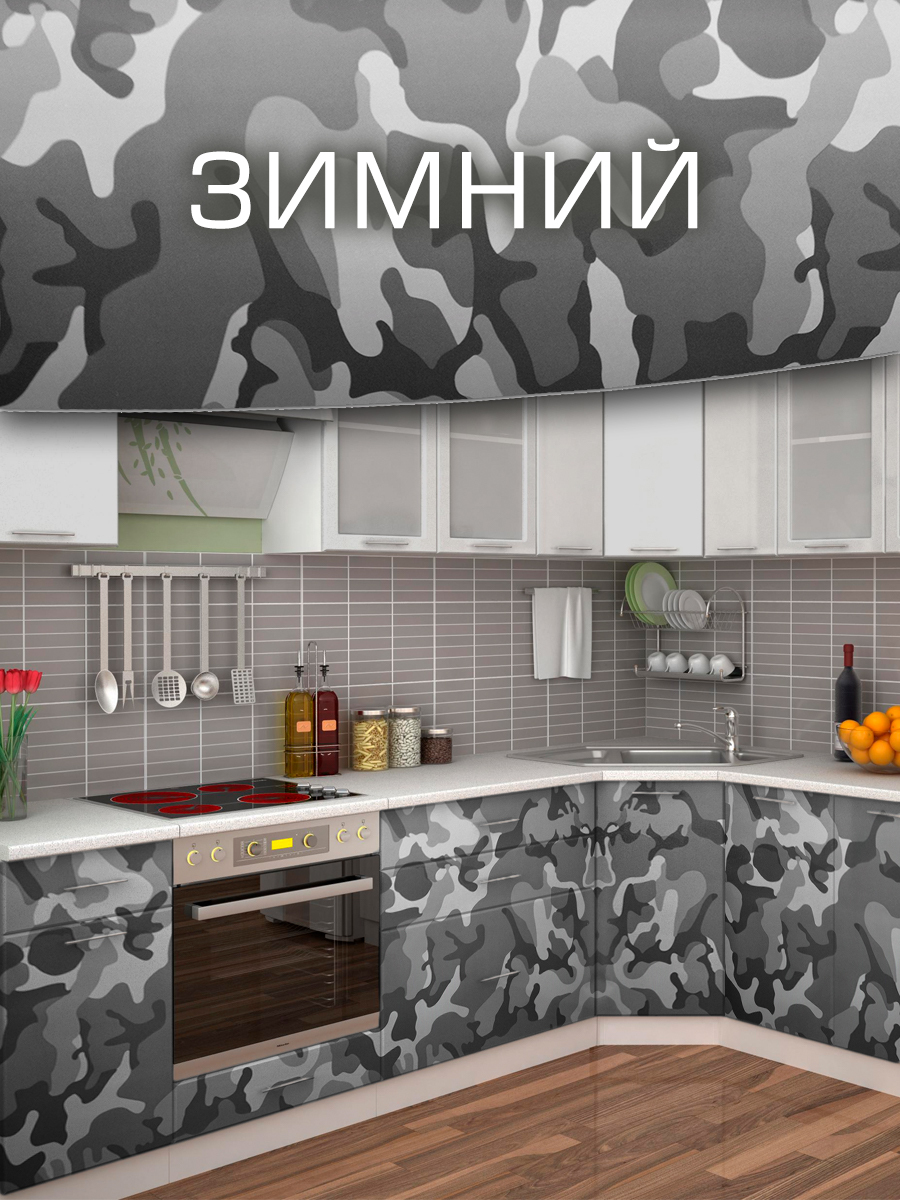 Плёнка самоклеящаяся матовая - камуфляж, для декорирования интерьера: 152х60 см, зимний