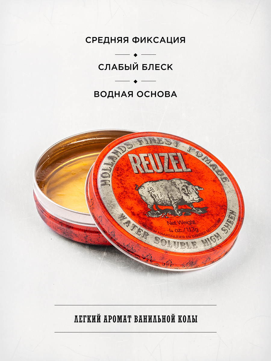 Reuzel Помада для волос мужская красная банка Pig, 113 гр, на водной основе