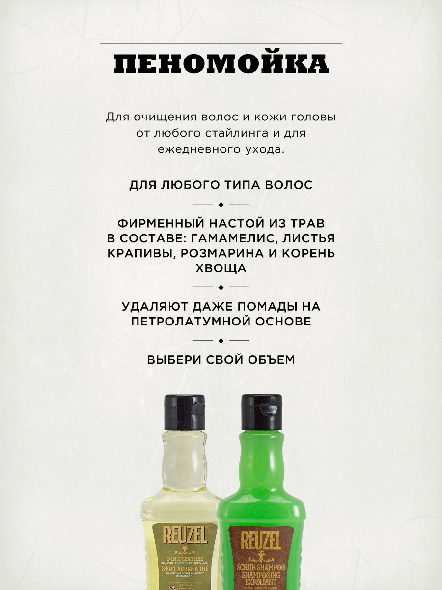 Reuzel Мужской шампунь для волос Чайное дерево 3 в 1 Tea Tree Shampoo 3 in 1, 350 мл