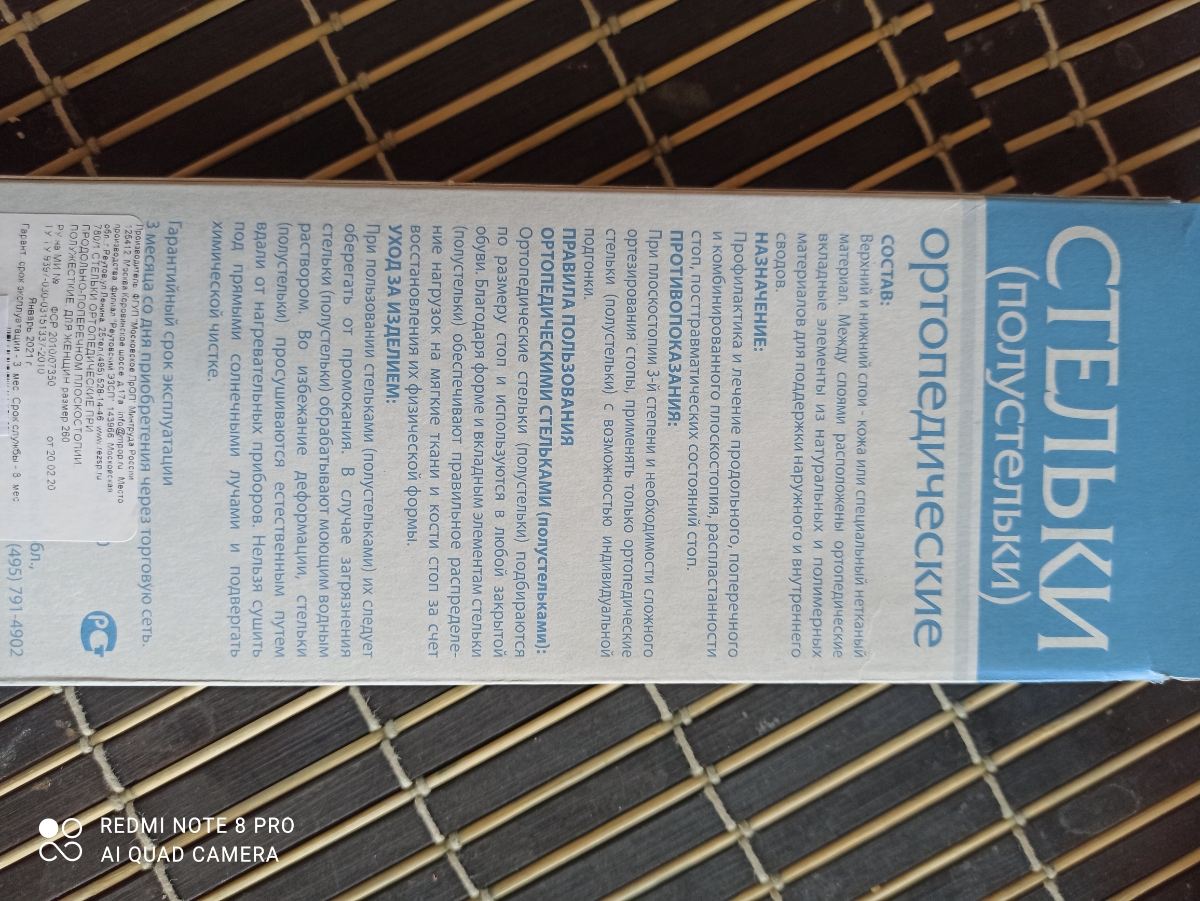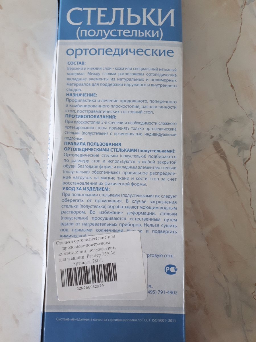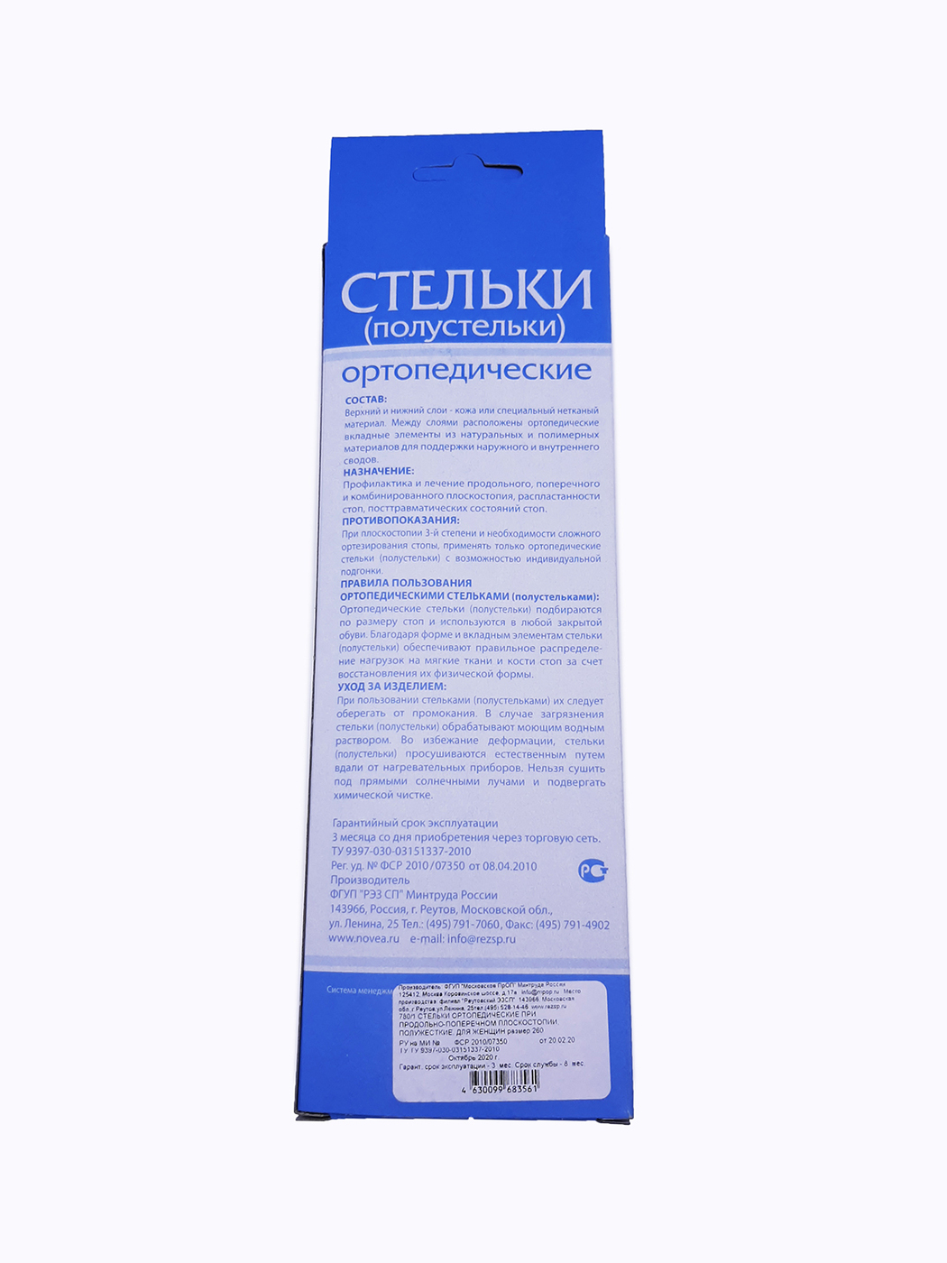 Стельки ортопедические при продольно-поперечном плоскостопии, полужесткие, для женщин. Размер 250