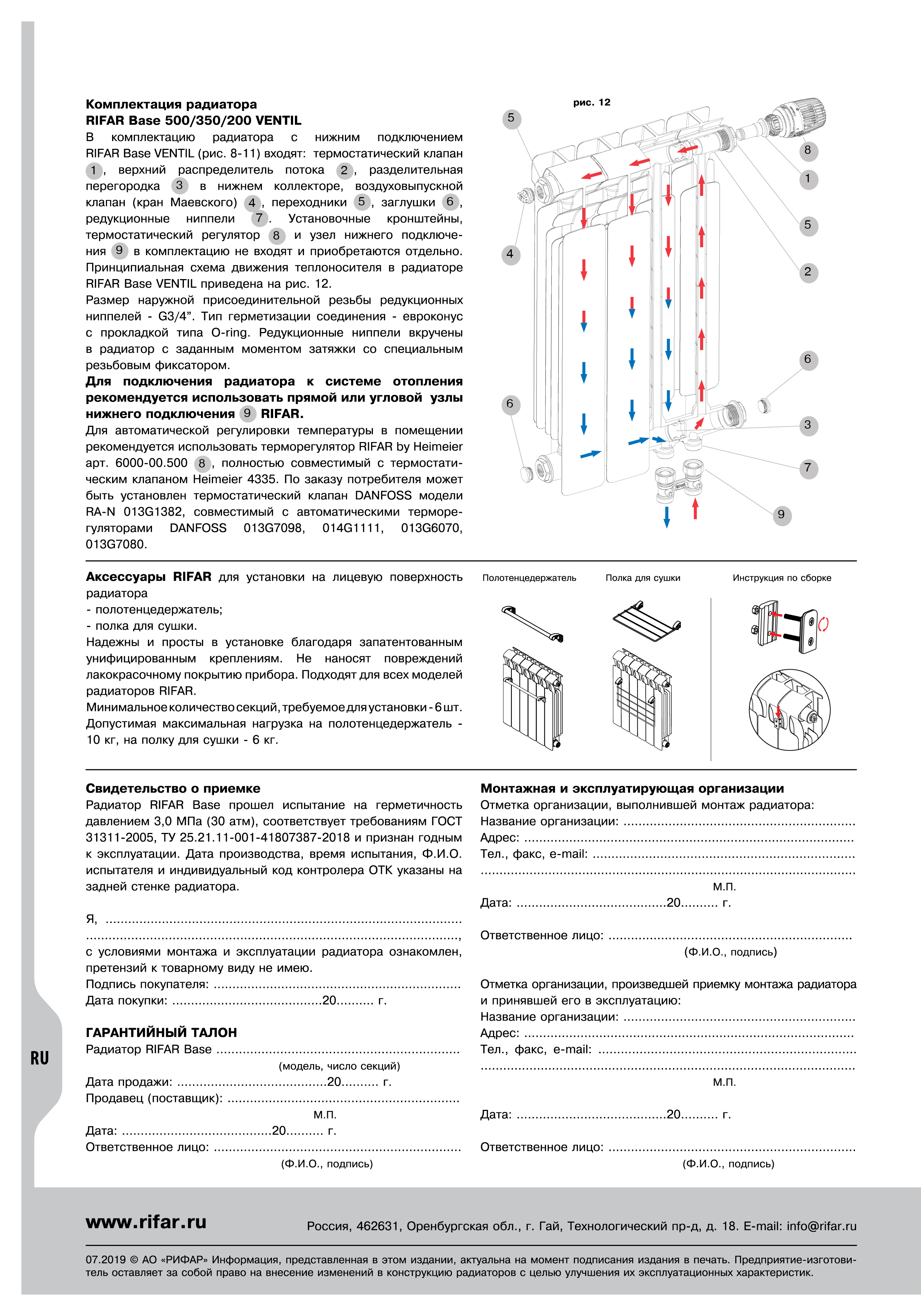 Секционный радиатор Биметалл Rifar Base 500/ 12, 12 секц.