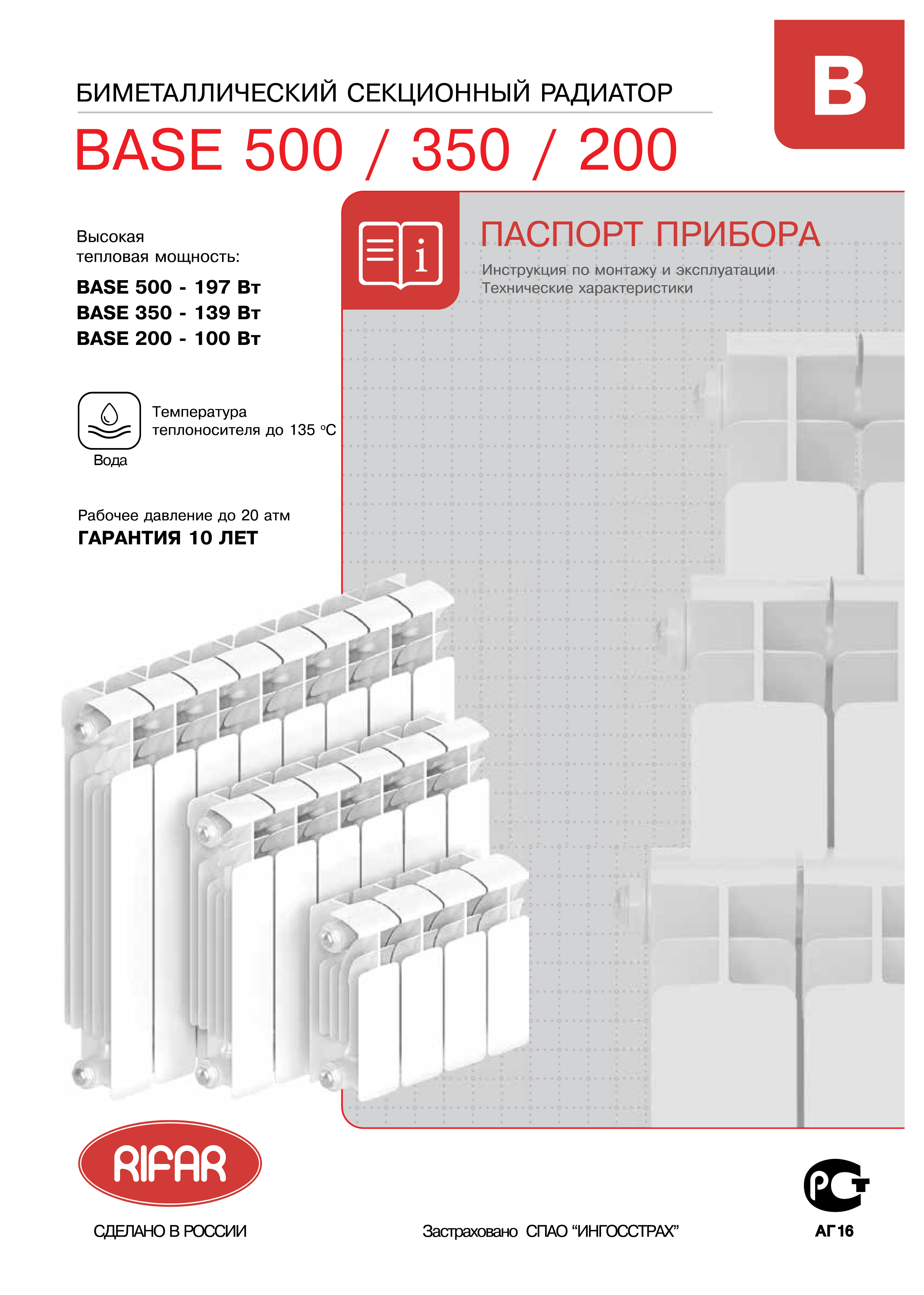 Секционный радиатор Биметалл Rifar Base 200 СантехМИР, 6 секц.