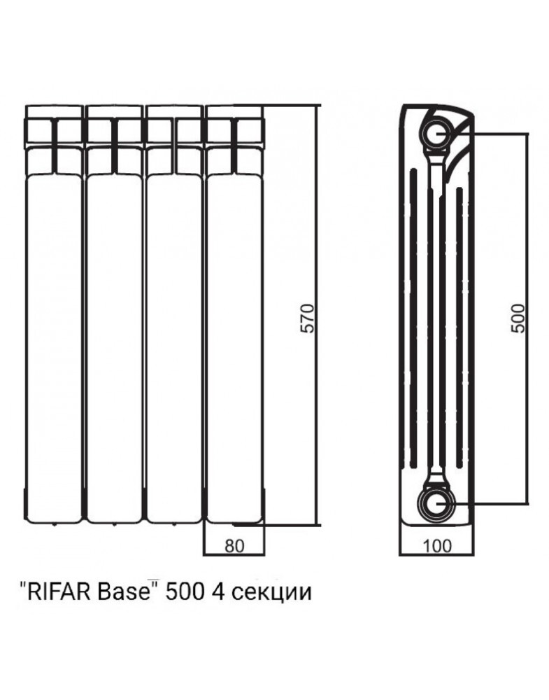 Секционный радиатор Биметалл Rifar Base 200 нижнее левое, 4 секц.