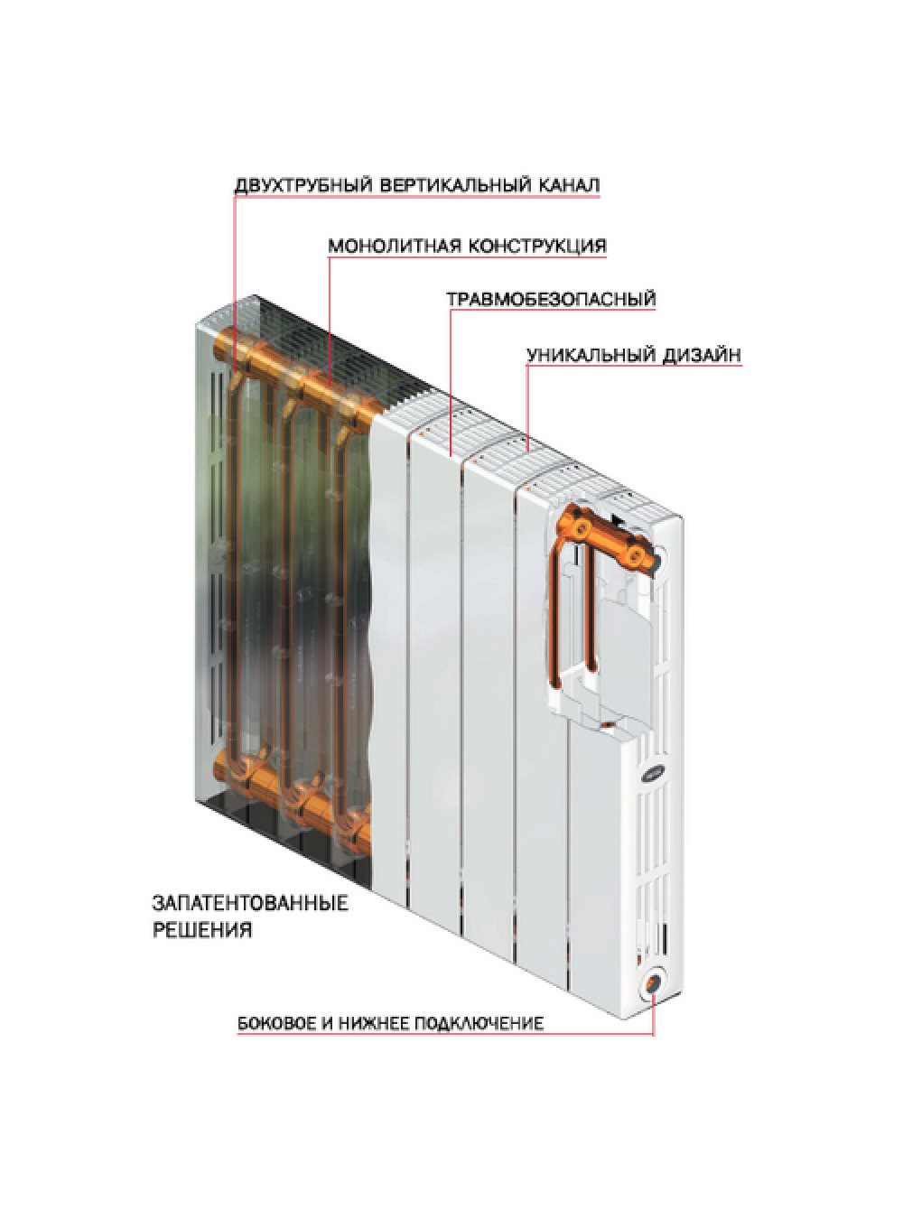 Секционный радиатор Биметалл Rifar Monolit 500-06, 6 секц.