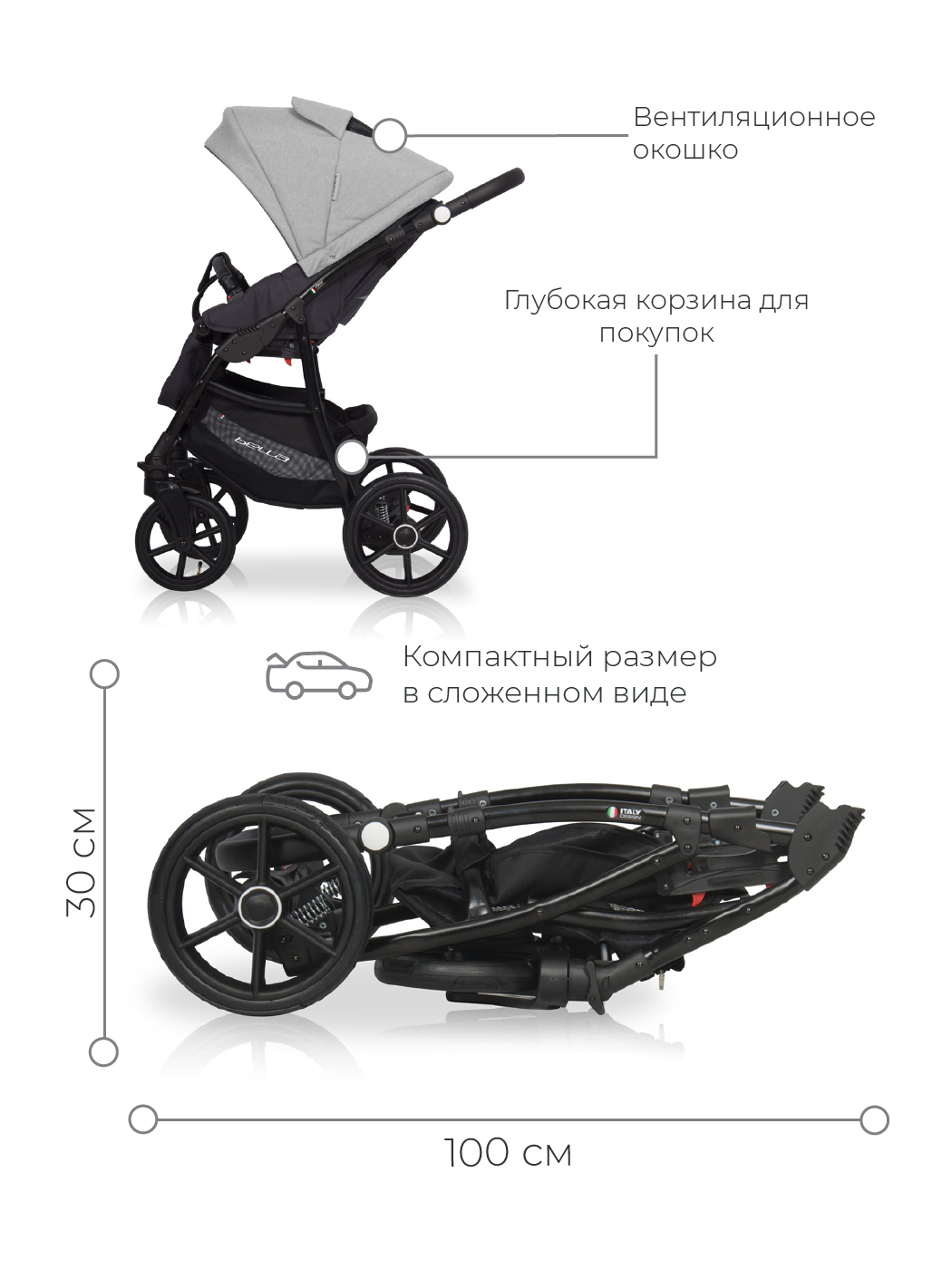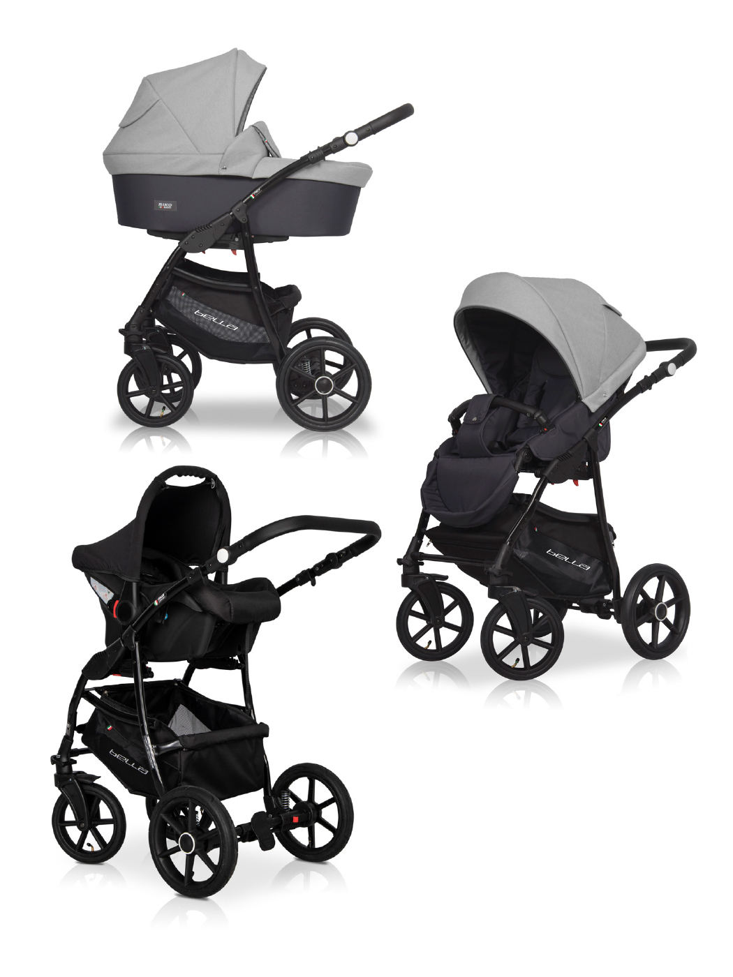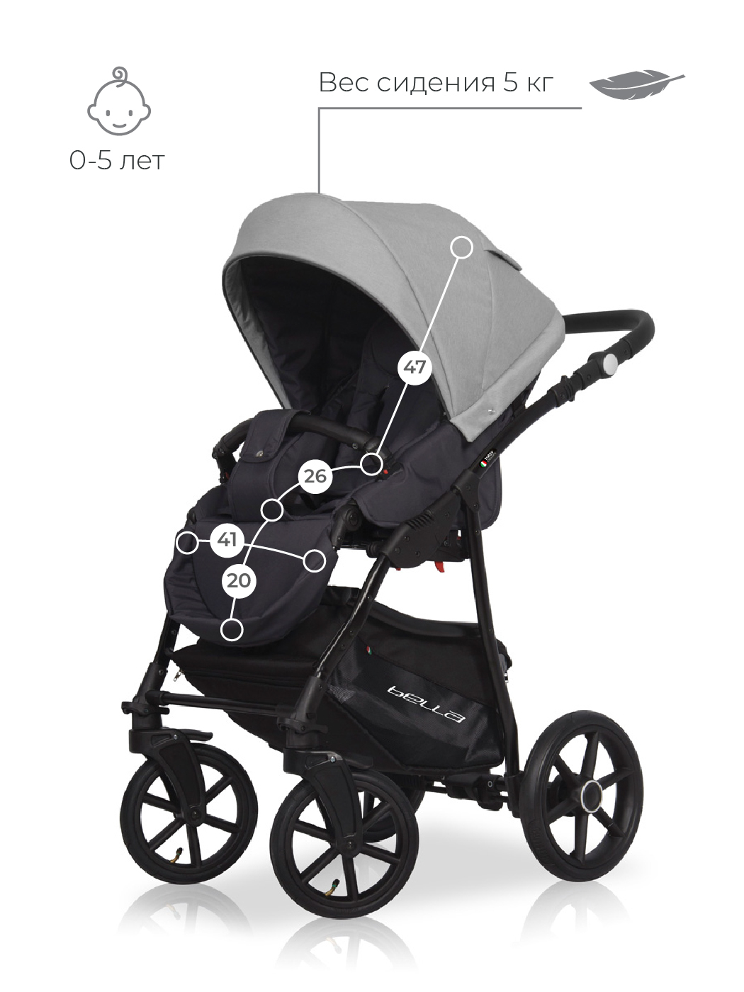 Коляска детская универсальная Riko Basic Bella 3 в 1 01 серый-графит