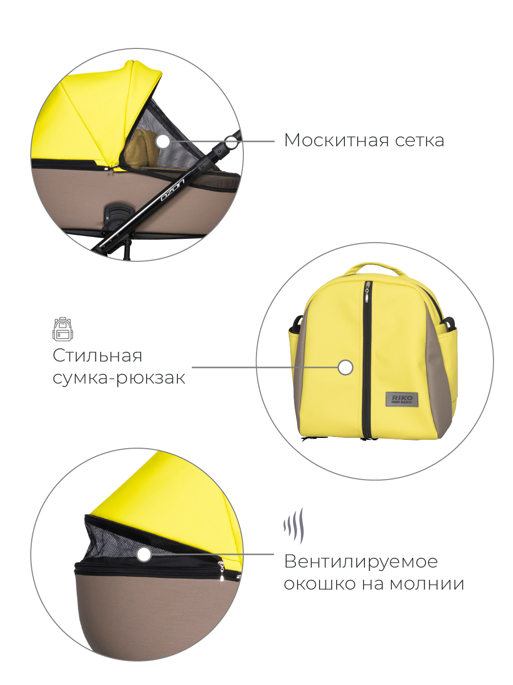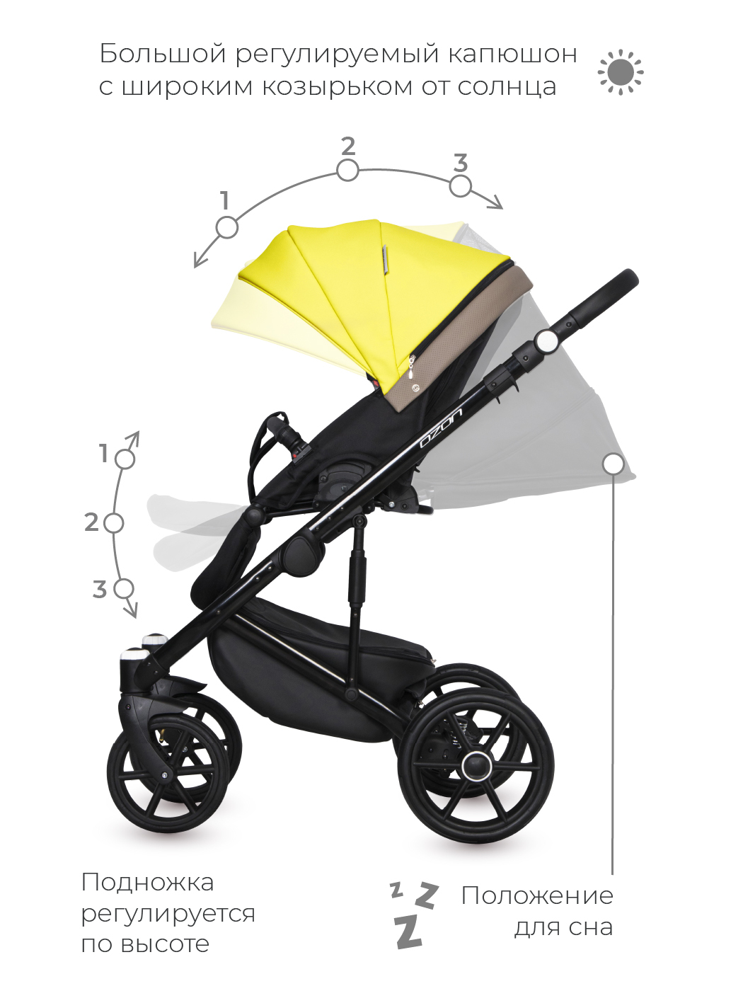 Коляска детская универсальная Riko Basic Ozon Ecco 2 в 1 26 лимонный-бежевый