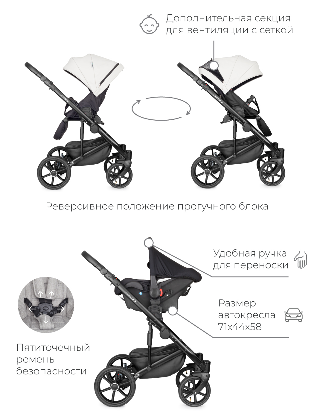 Коляска детская универсальная Riko Basic Ozon Ecco 3 в 1 25 слоновая кость-бежевый