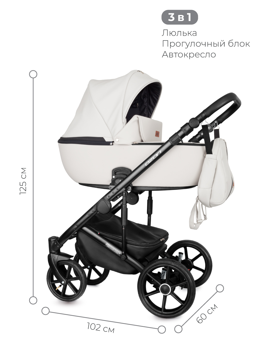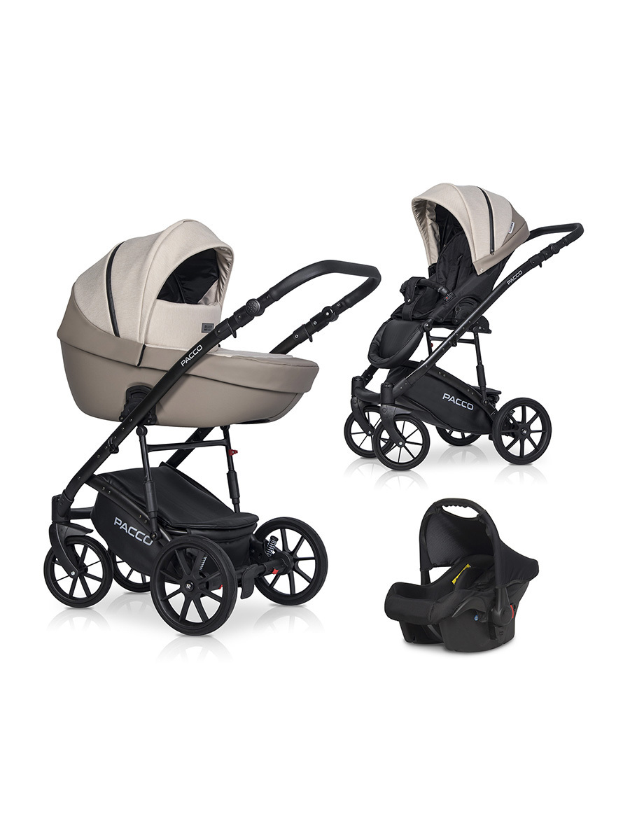 Коляска детская универсальная Riko Basic Pacco 3 в 1, 06 Latte бежевый-коричневый