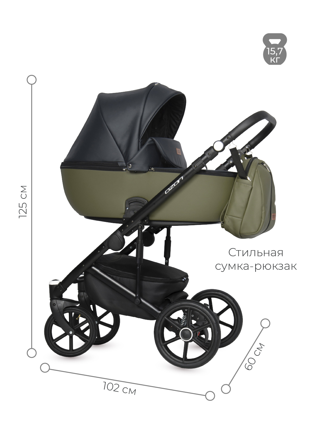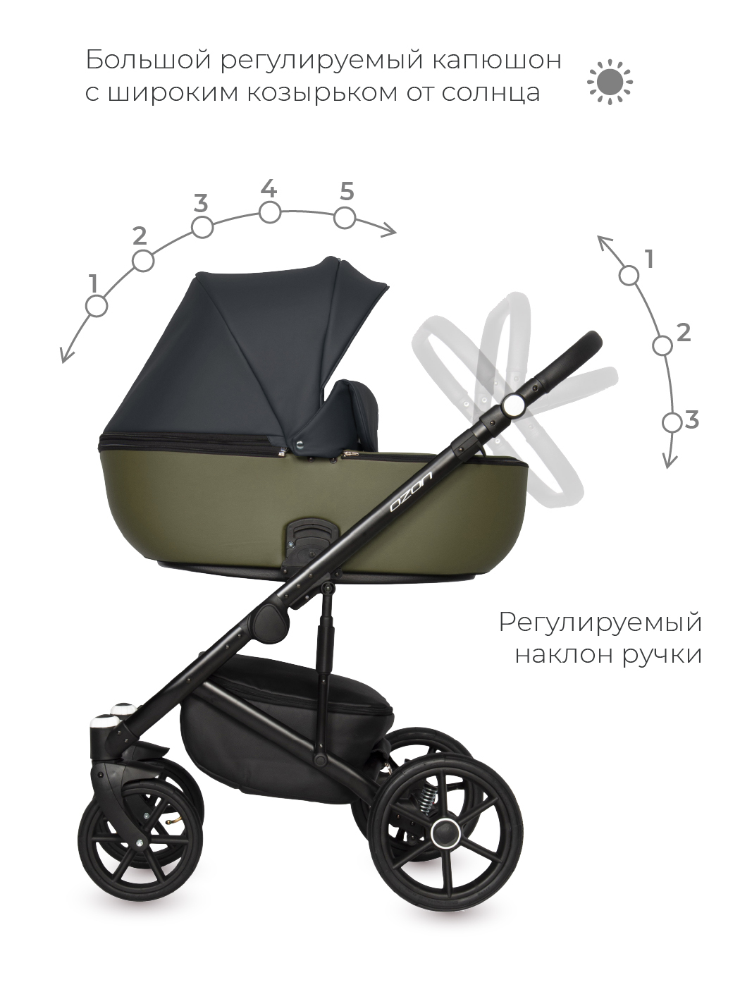 Коляска детская универсальная Riko Basic Ozon 2 в 1 02 черно-зеленый