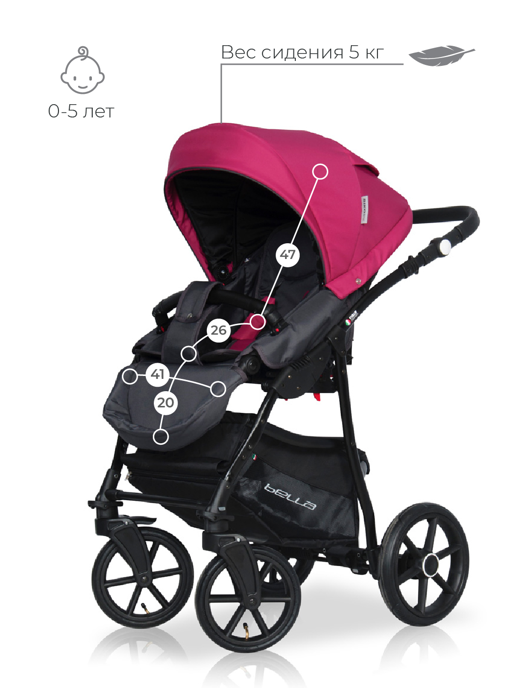 Коляска детская универсальная Riko Basic Bella 3 в 1 04 серый-сиреневый