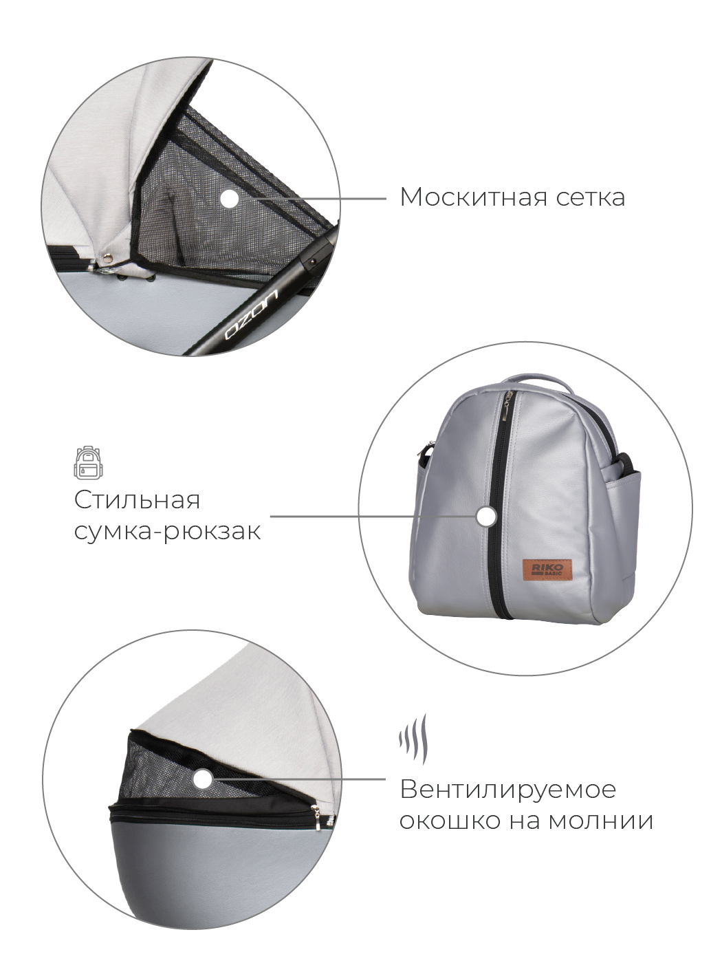 Коляска детская универсальная Riko Basic Ozon 2 в 1 05 светло-серый