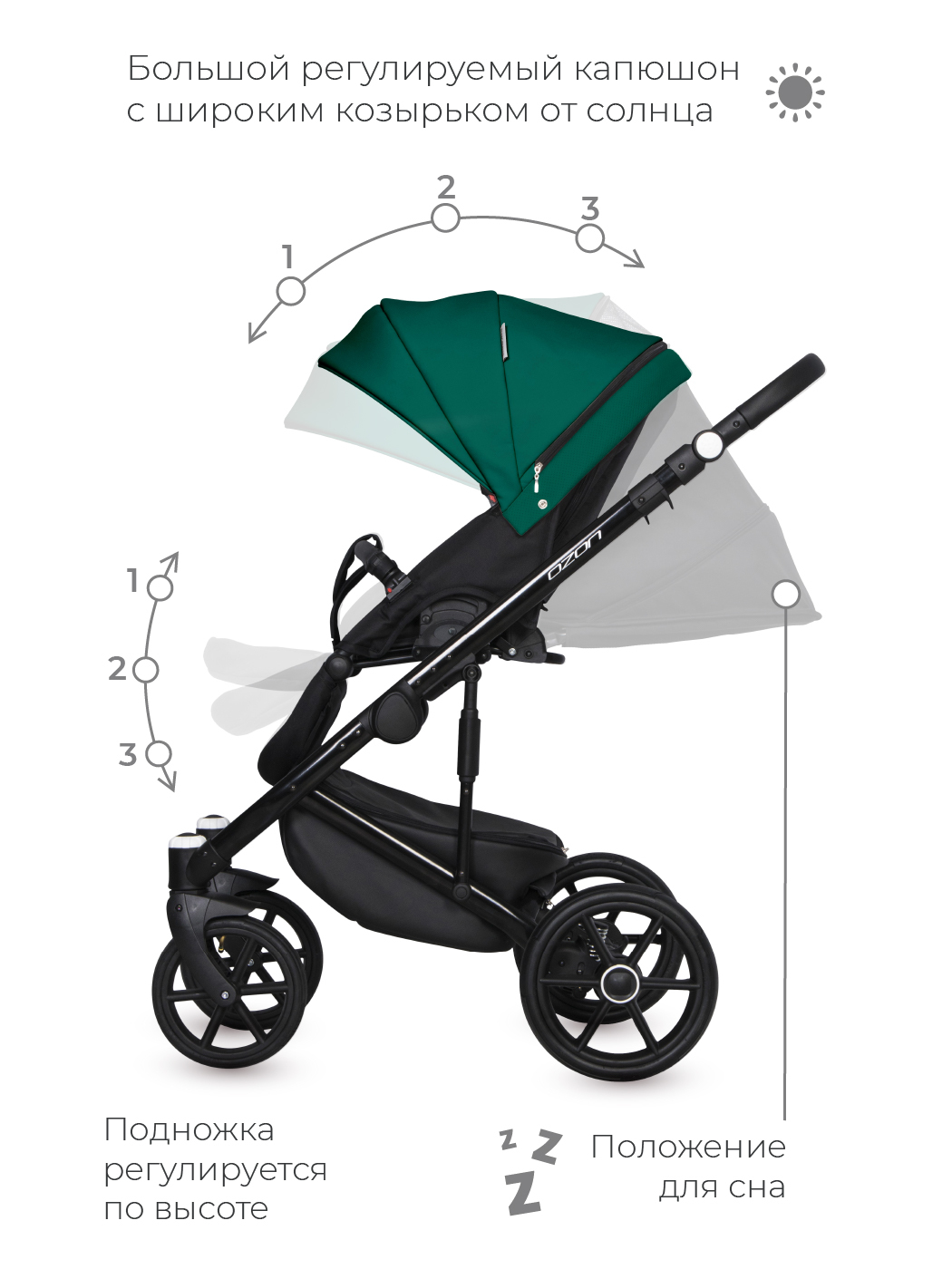 Коляска детская универсальная Riko Basic Ozon Ecco 2 в 1 22 изумрудный