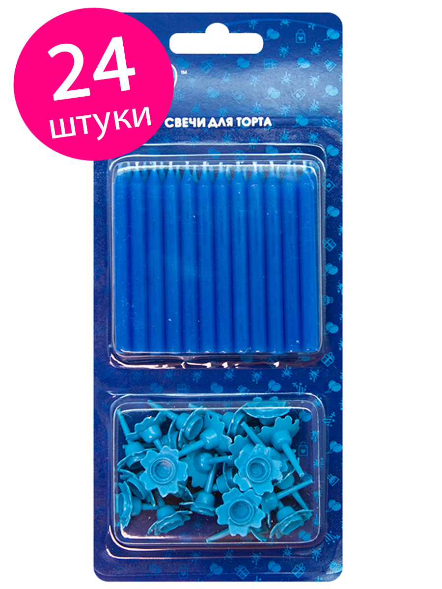 Свечи для торта Riota на день рождения Голубые с держателями, набор 24 шт
