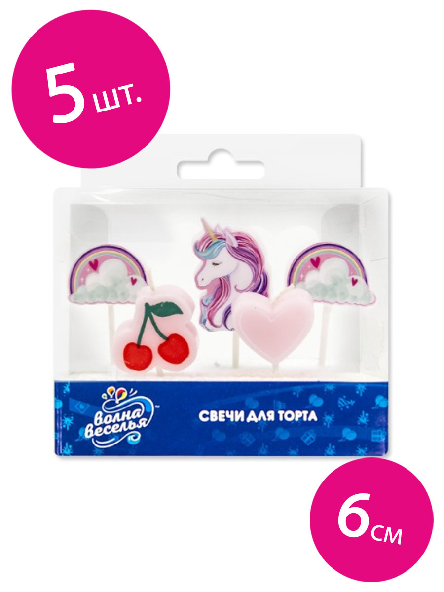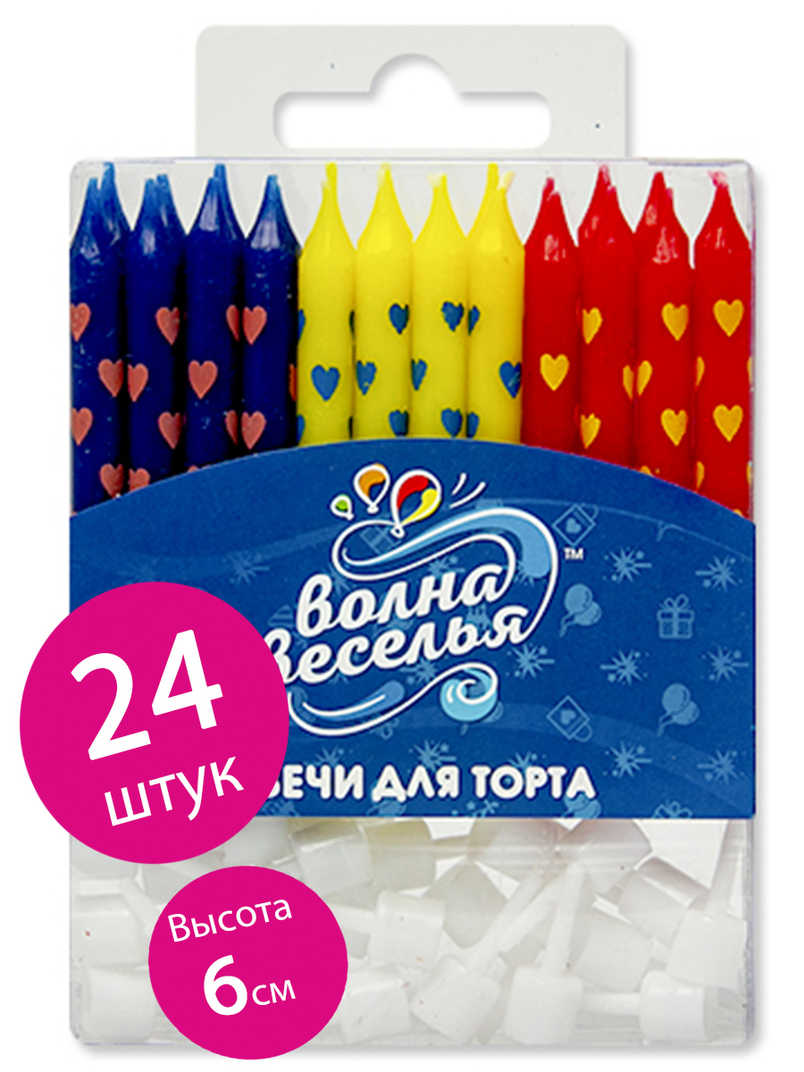 Свечи для торта Riota на день рождения Разноцветные с сердцами/сердечками, 6 см, набор 24 шт