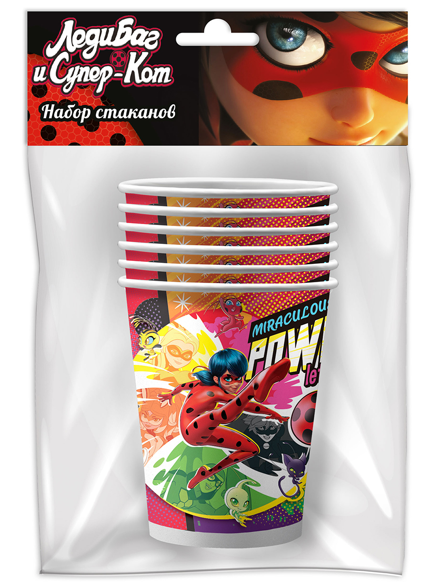 Стаканы бумажные Riota для праздника Леди Баг и Супер Кот, яркие, 250 мл, 6 шт.