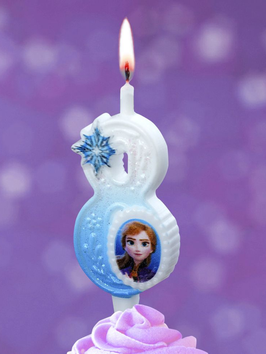 Свеча парафиновая Riota для торта Холодное сердце цифра 8, 12 см, 1 шт