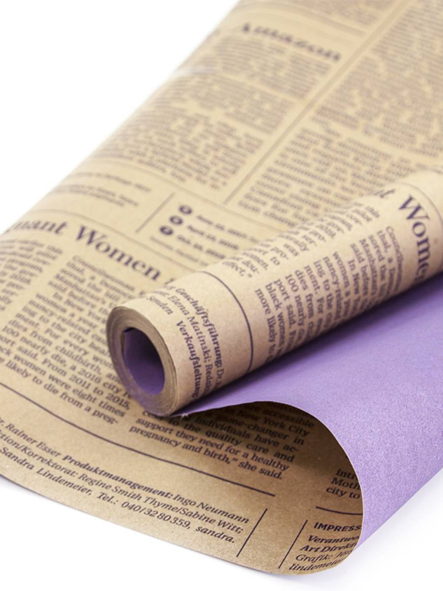 Бумага подарочная упаковочная Riota Газета двусторонняя, фиолетовый, 0,7*9,14 м, 1 шт