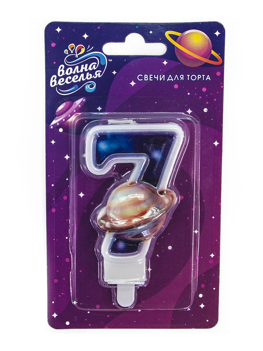 Свеча парафиновая Riota для торта Космос цифра 7, 9 см, 1 шт