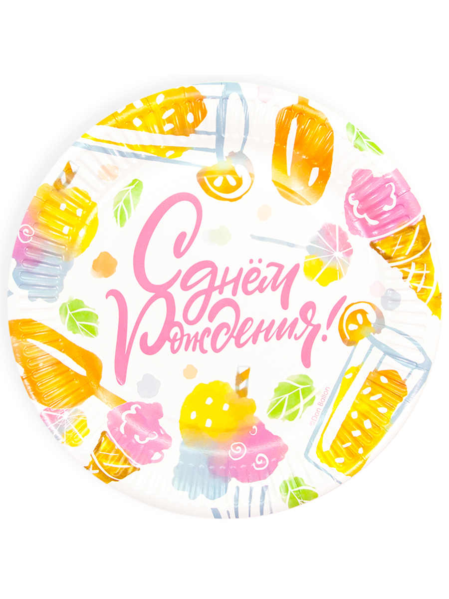 Тарелки бумажные Riota для праздника и пикника Мороженое, белые, 18 см, 6 шт
