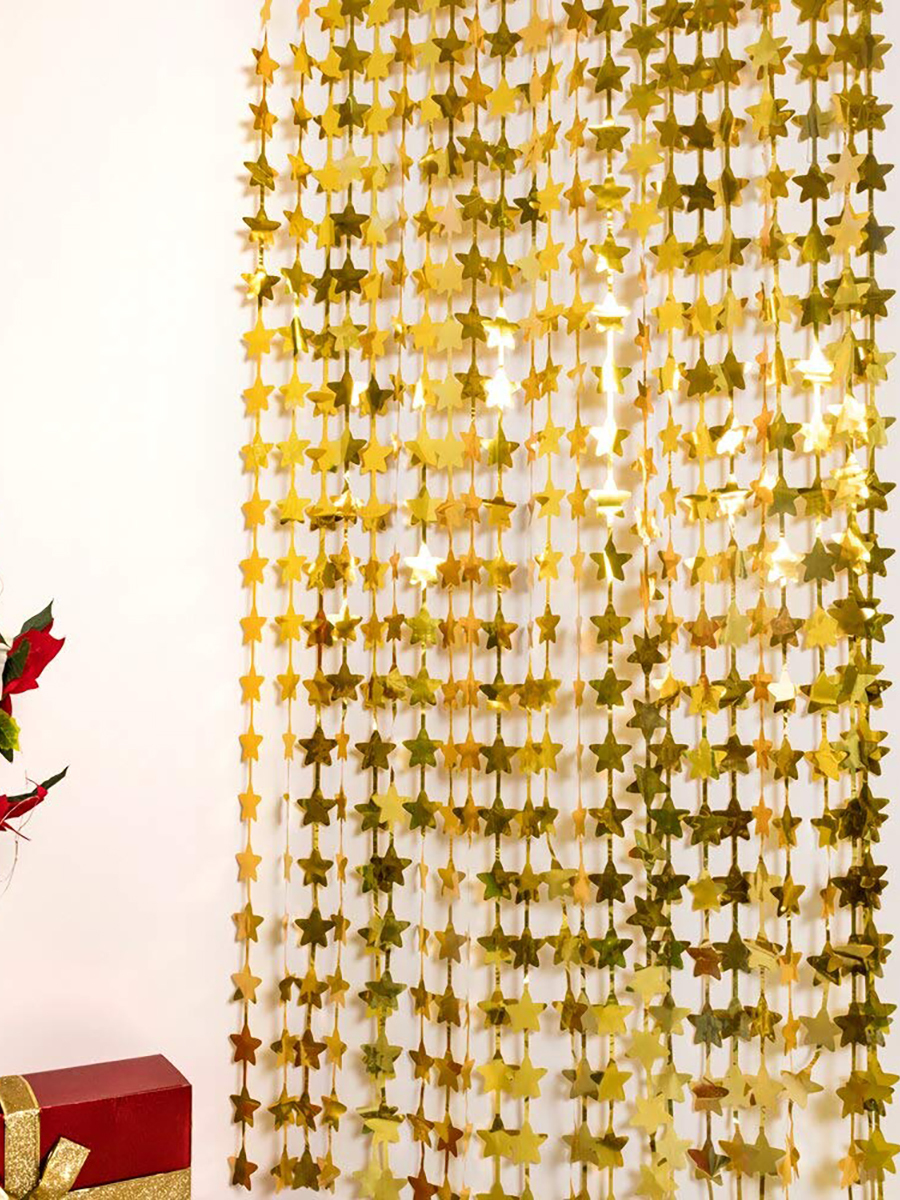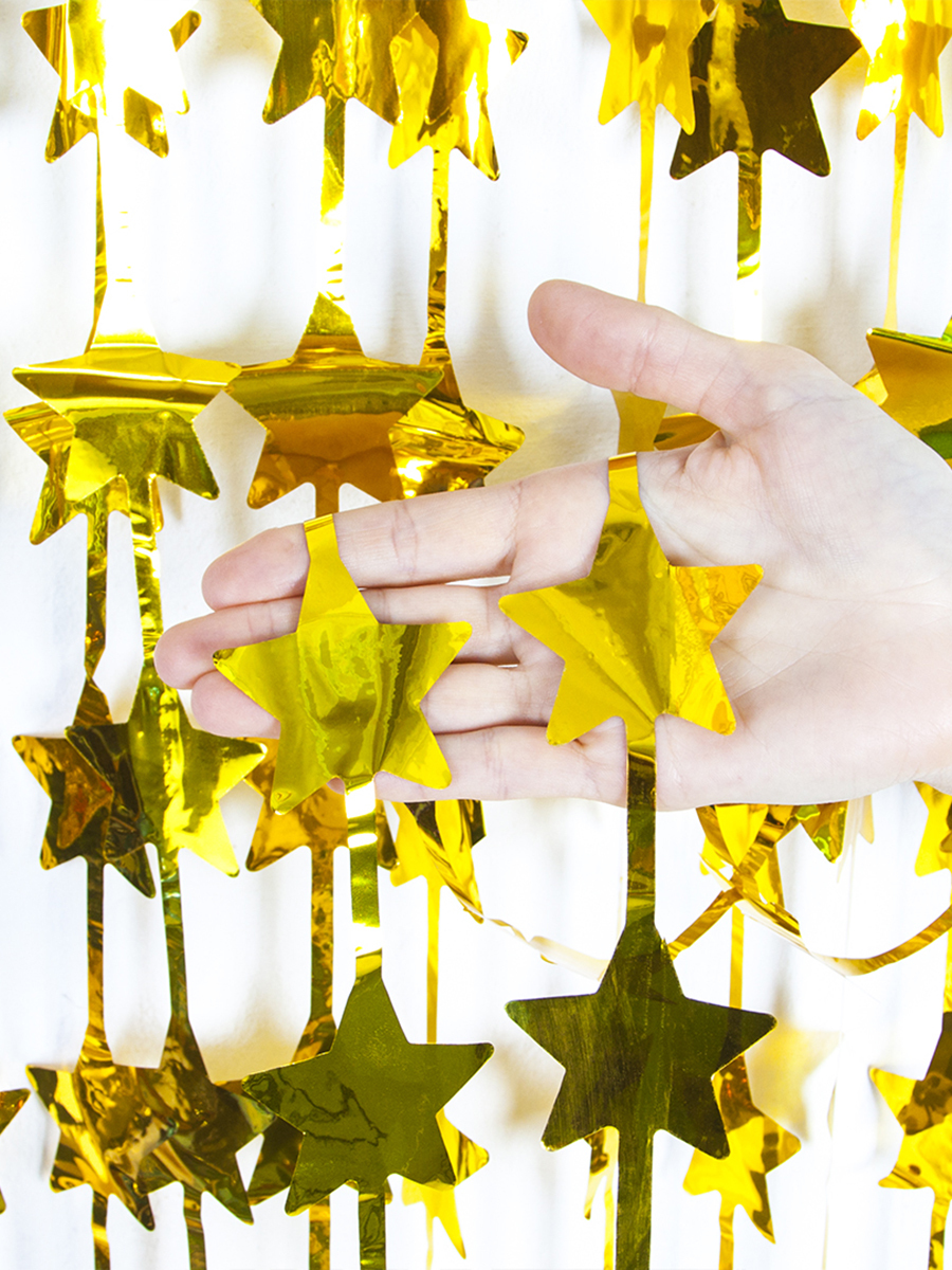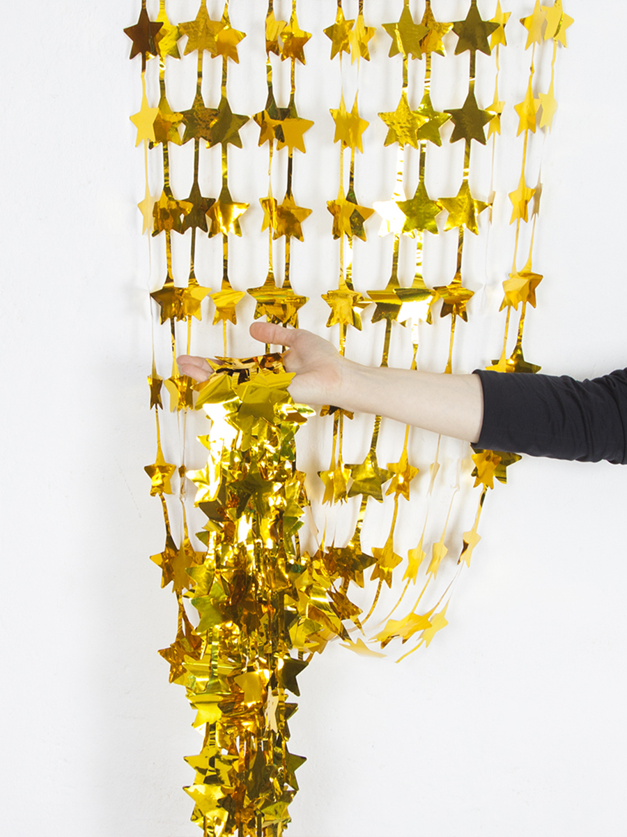 Гирлянда занавес фольгированная блестящая для праздника Riota Звезды, золотой, 100х200 см