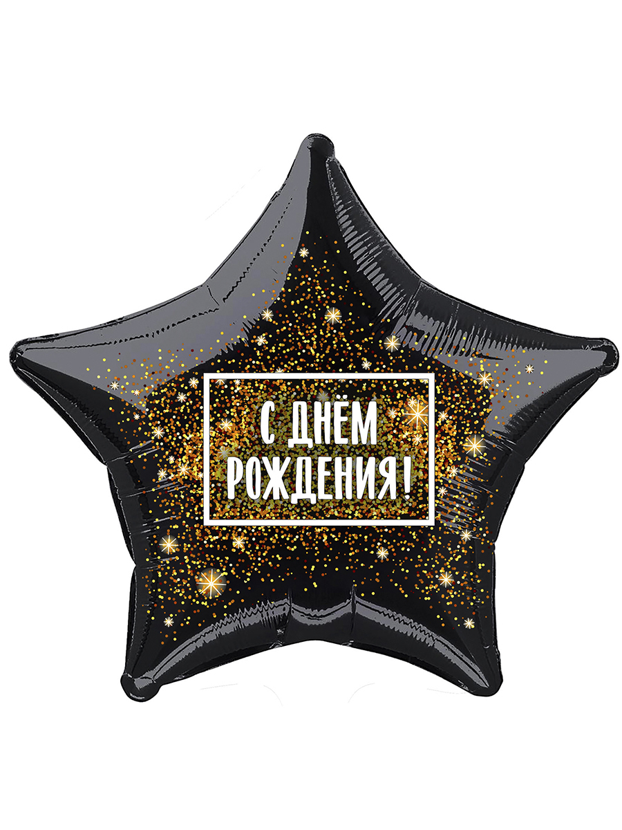 Воздушный шар звезда Riota, С Днем Рождения! Чёрный, 45 см