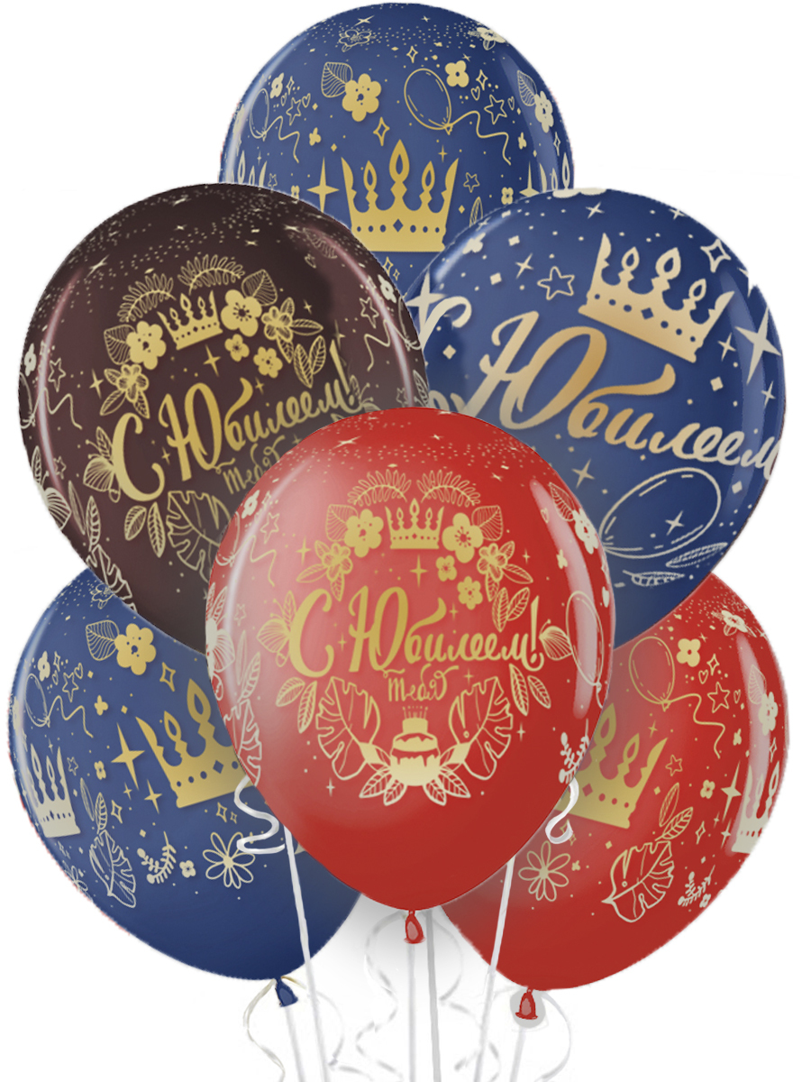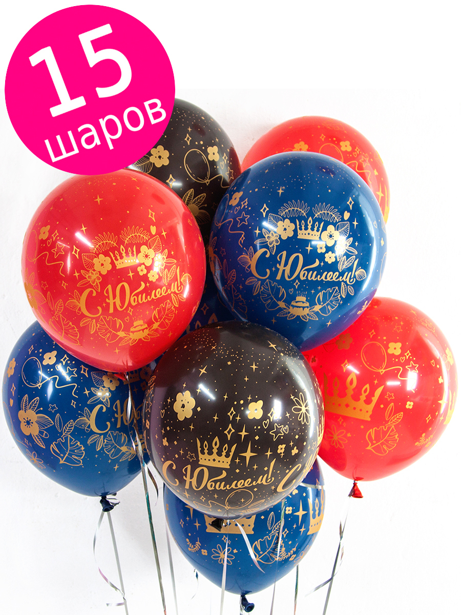 Воздушные шары Riota латексные С Юбилеем (короны), набор 15 шт