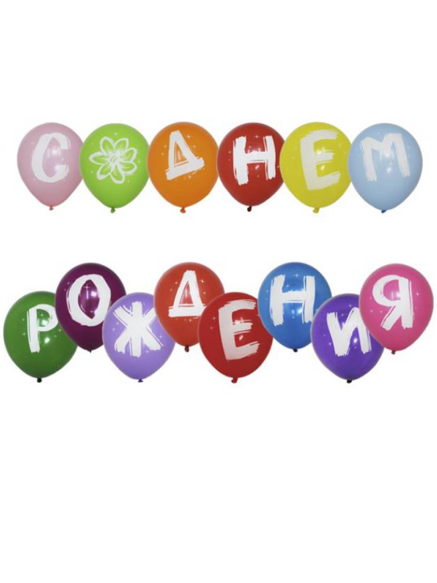 Воздушные шары Riota буквы С днем рождения, 25 см, набор 14 шт
