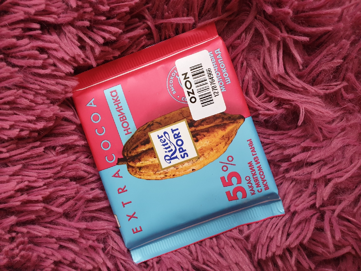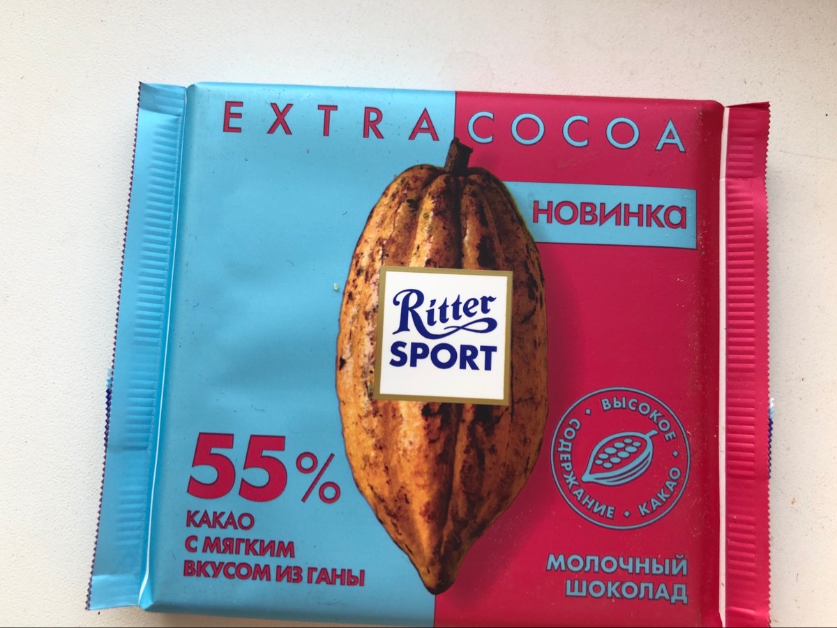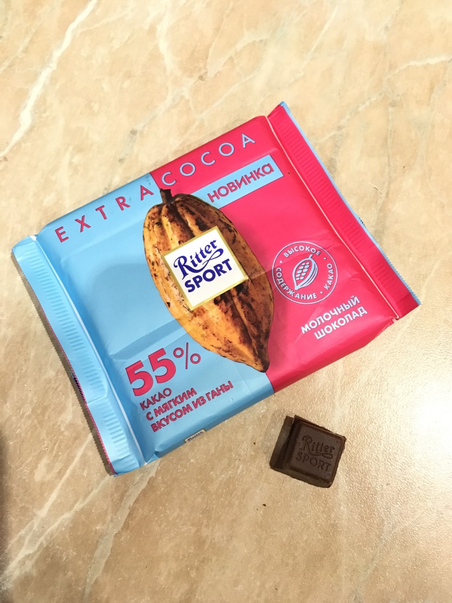 Шоколад молочный Ritter Sport "55% какао", с мягким вкусом из Ганы, 100 г