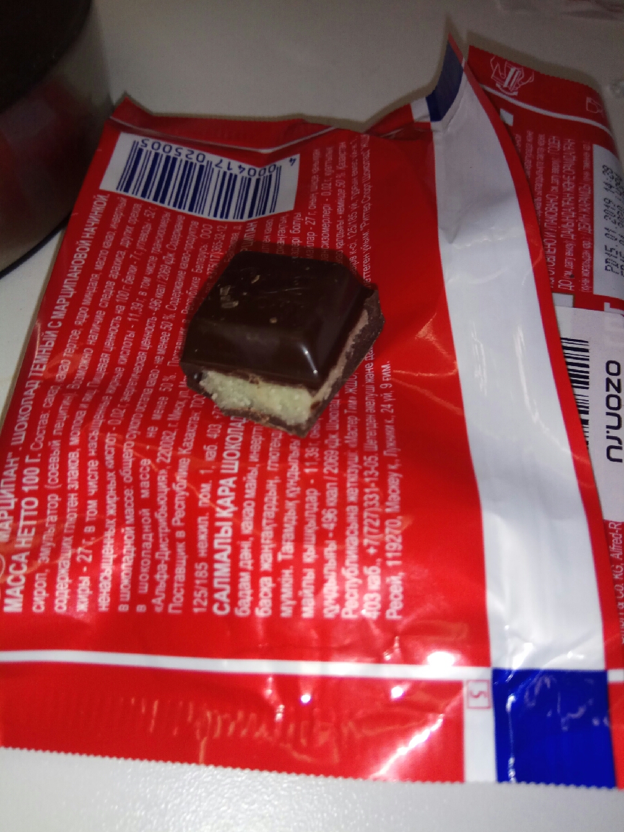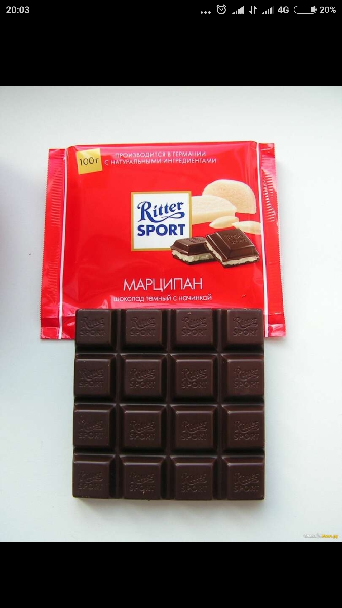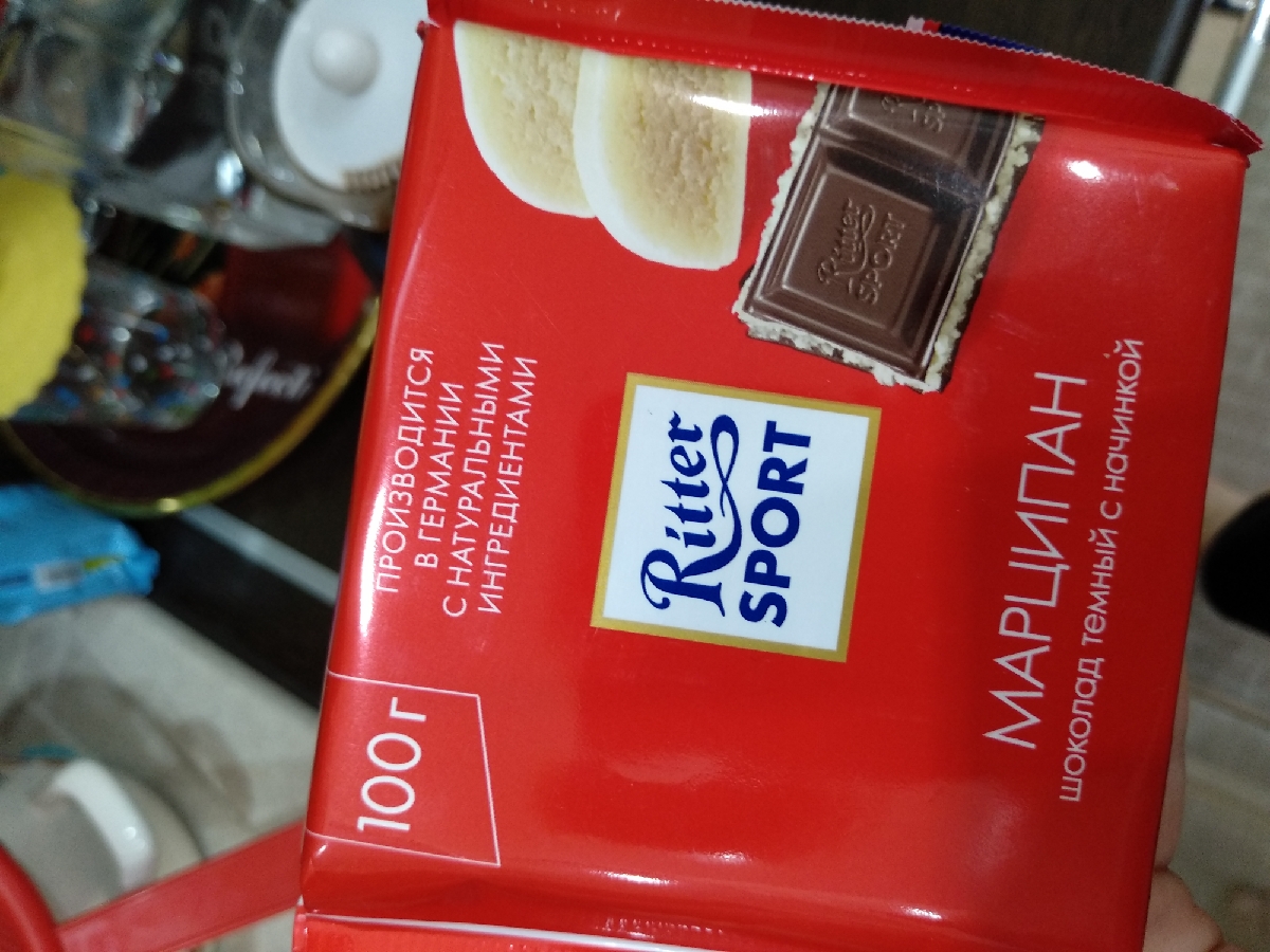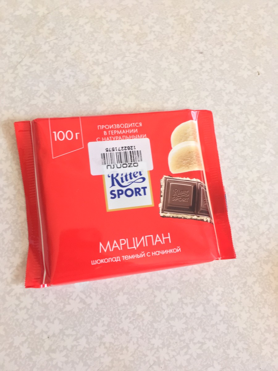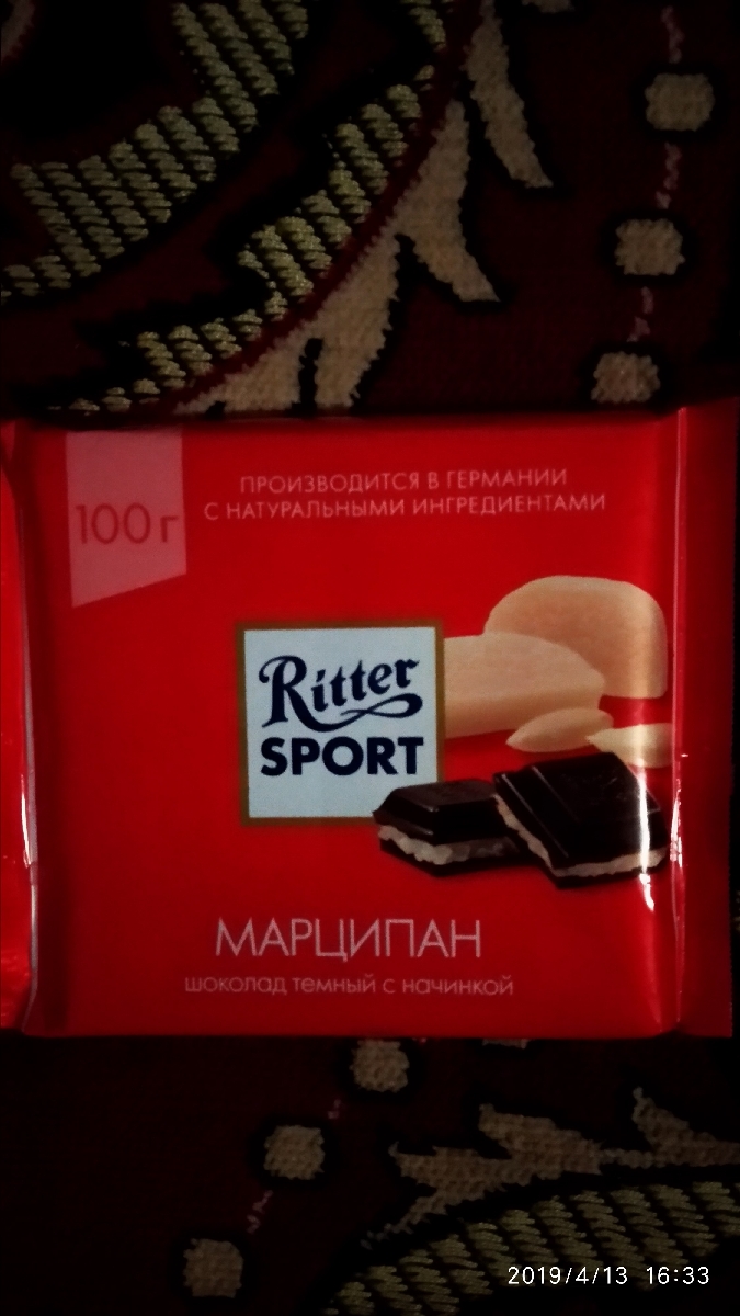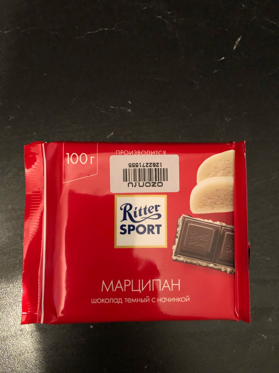 Шоколад "Ritter Sport" 51% темный с марципаном, 100г