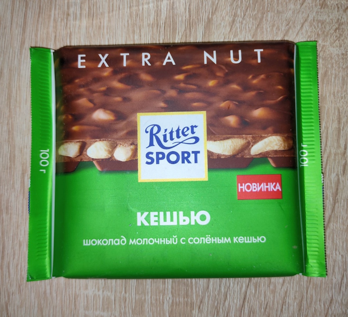 Молочный шоколад Ritter Sport Кешью, с кусочками соленого кешью, 100 г