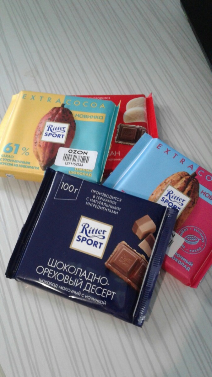 Шоколад молочный Ritter Sport "55% какао", с мягким вкусом из Ганы, 100 г
