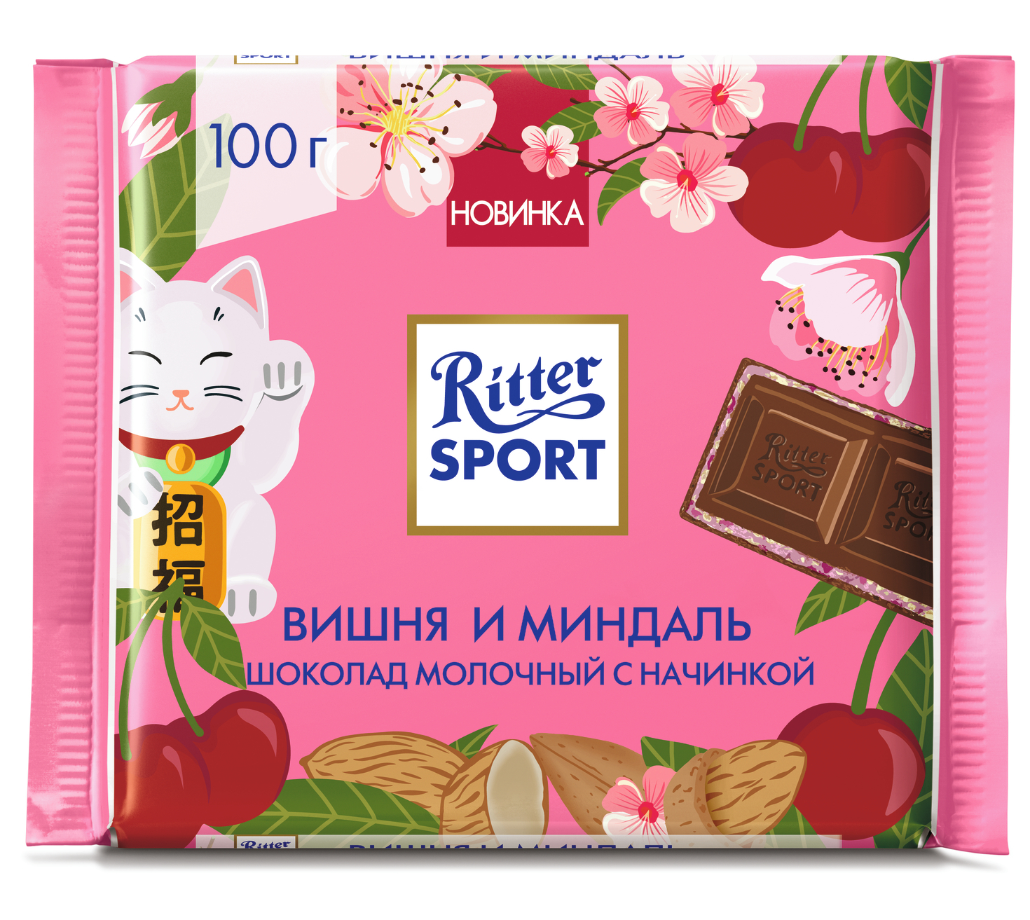 Шоколад Ritter Sport Миндаль и вишня, молочный, с миндальновишневой начинкой