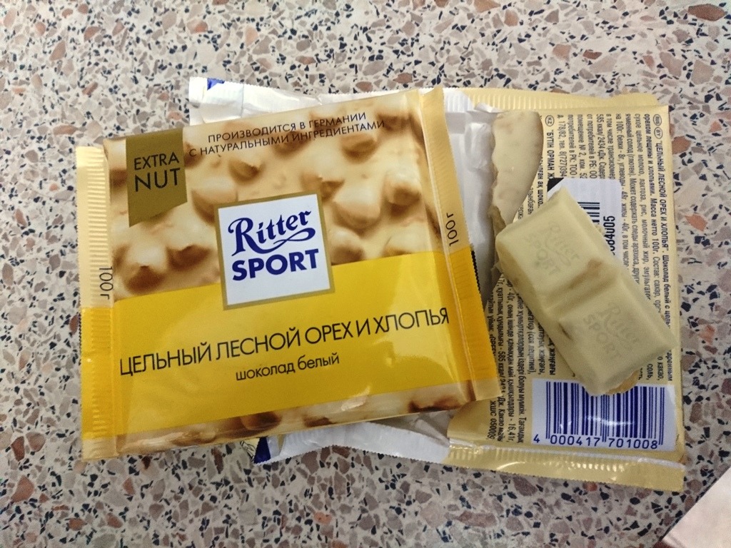 Шоколад белый Ritter Sport Цельный лесной орех и хлопья, 100 г