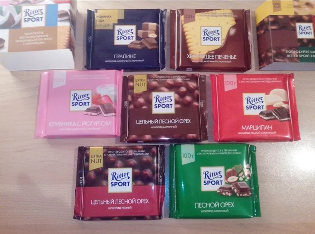 Шоколад Ritter Sport молочный с мягким вкусом из ганы 55%, 100г