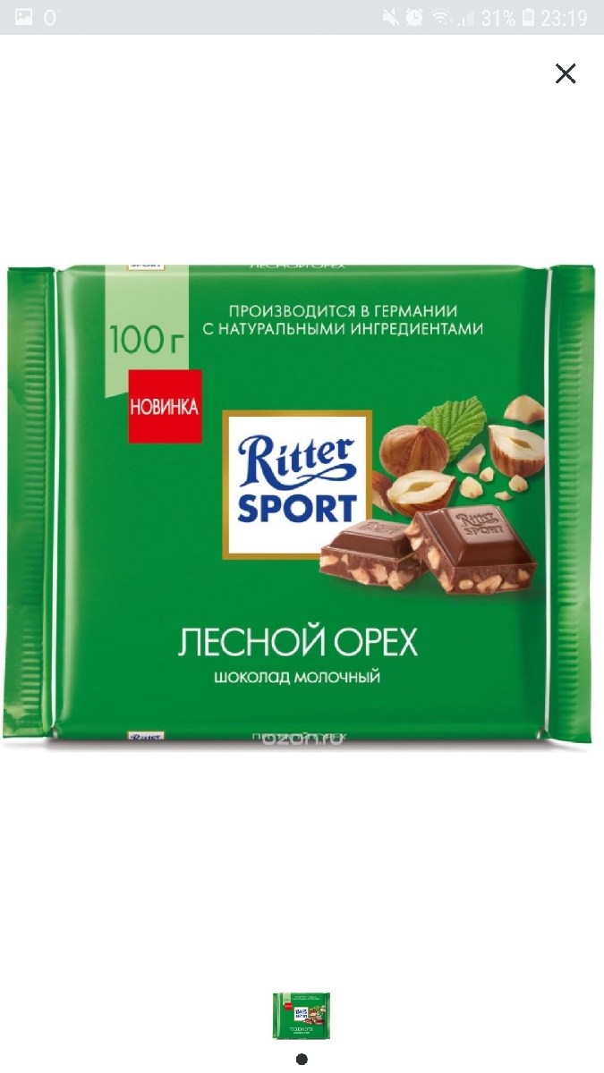 Ritter Sport Лесной орех шоколад молочный с обжаренным орехом лещины, 100 г