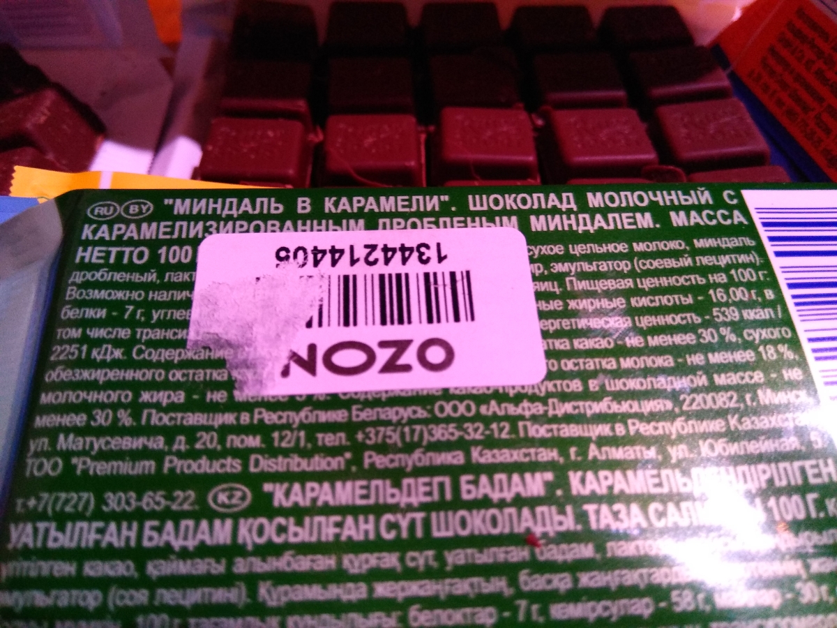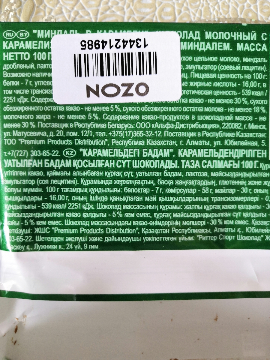 Риттер Спорт Миндаль в карамели Молочный 100г*12шт