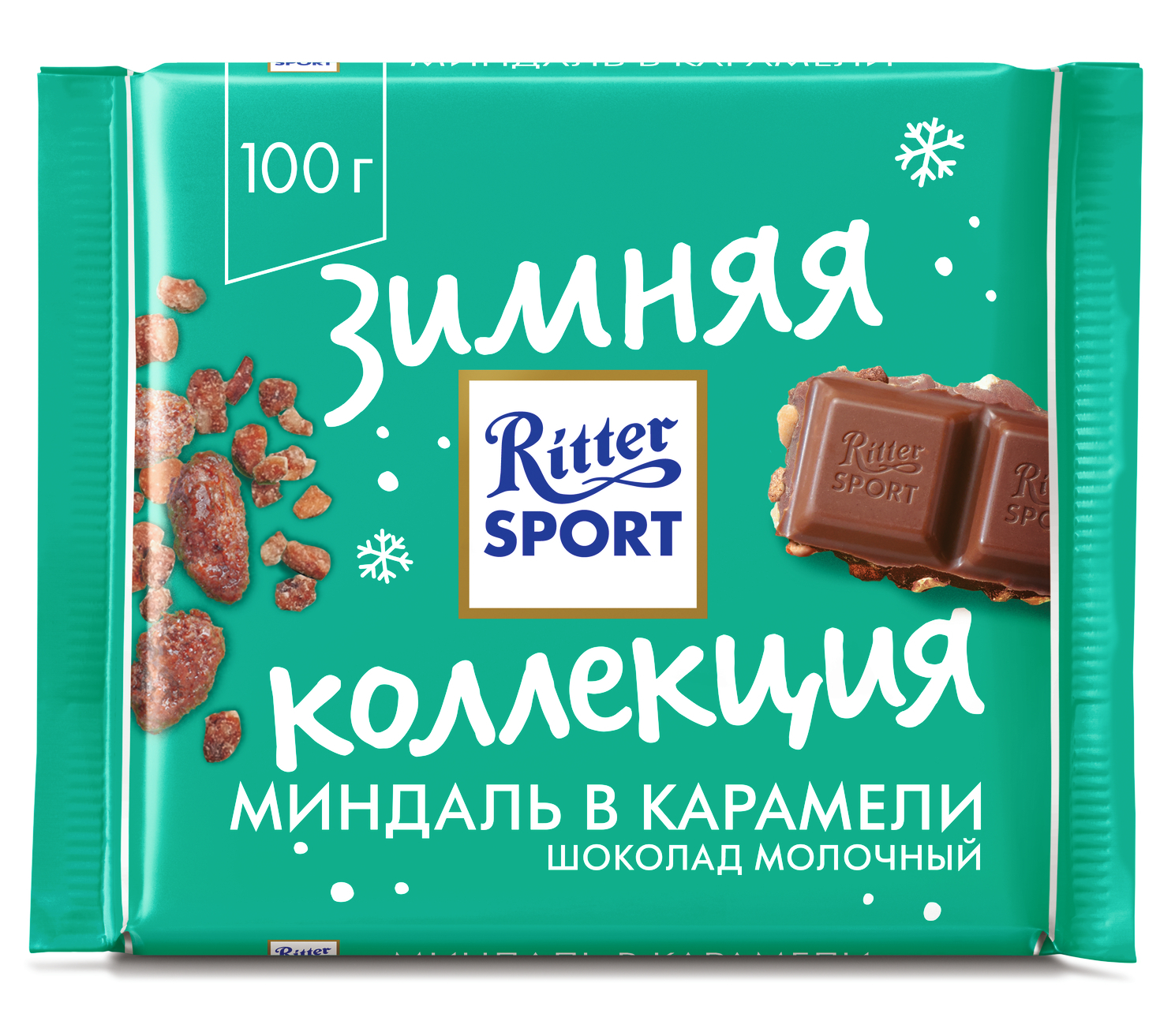 Шоколад молочный Ritter Sport Миндаль в карамели, с карамелизованным дробленым миндалем, 100 г