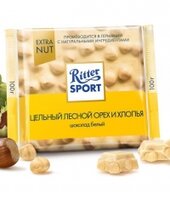 Шоколад Ritter Sport Extra Nut белый цельный лесной орех и хлопья