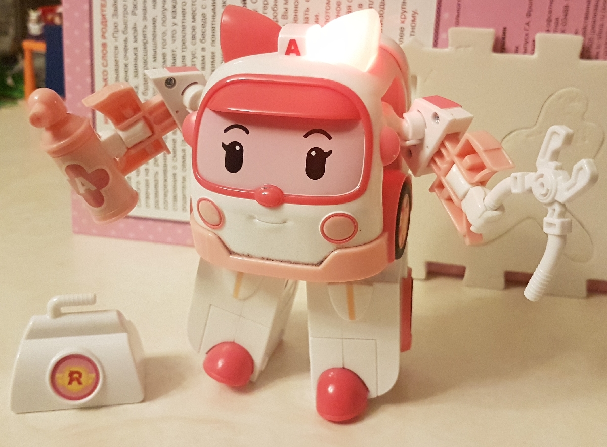 Трансформер Robocar Poli Эмбер, со световыми эффектами, с аксессуарами, 12,5 см