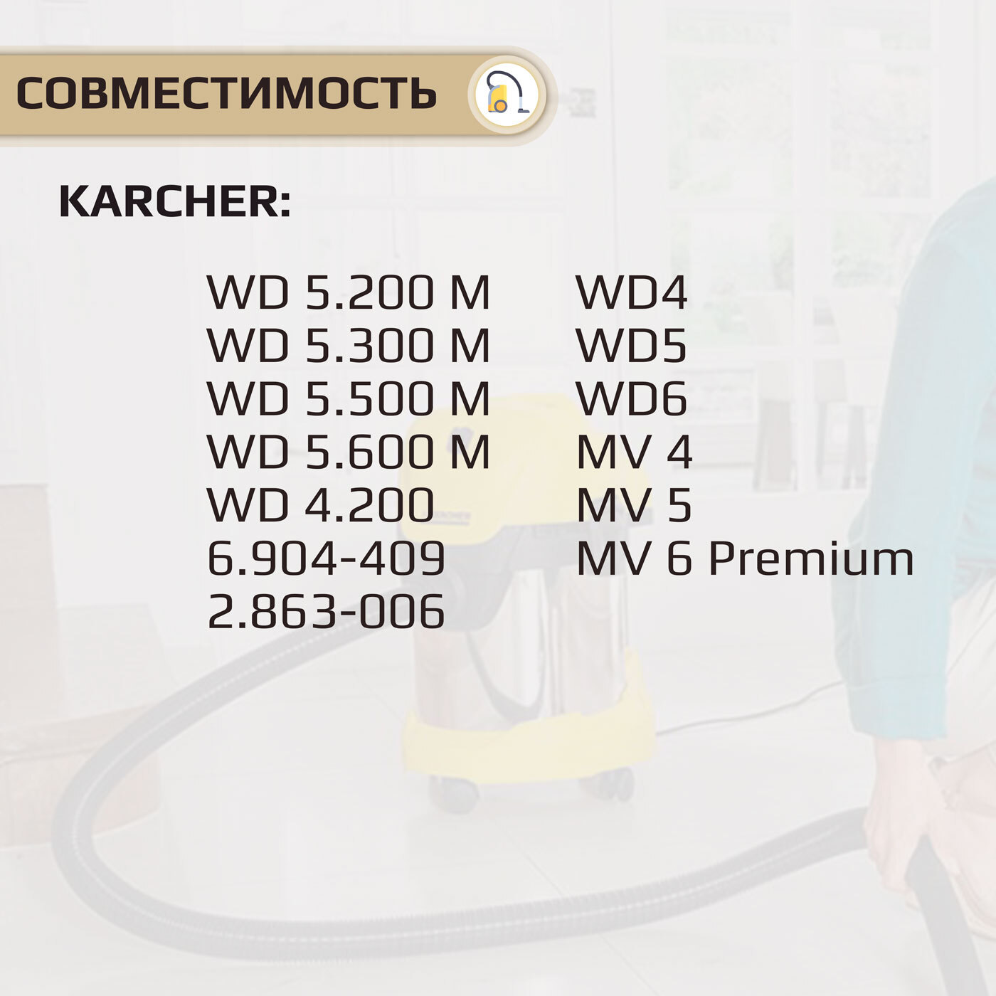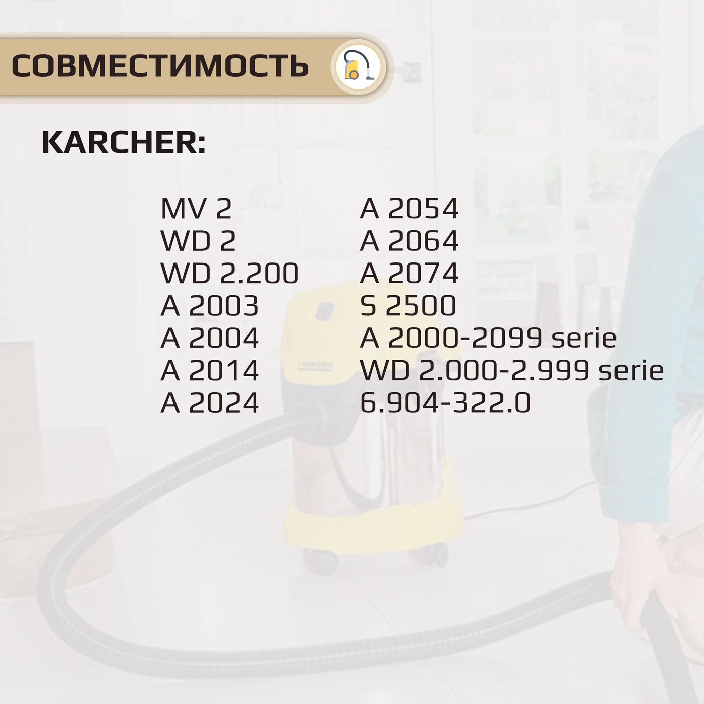Мешок - пылесборник многоразовый для пылесоса KARCHER WD2, MV2, WD2.200