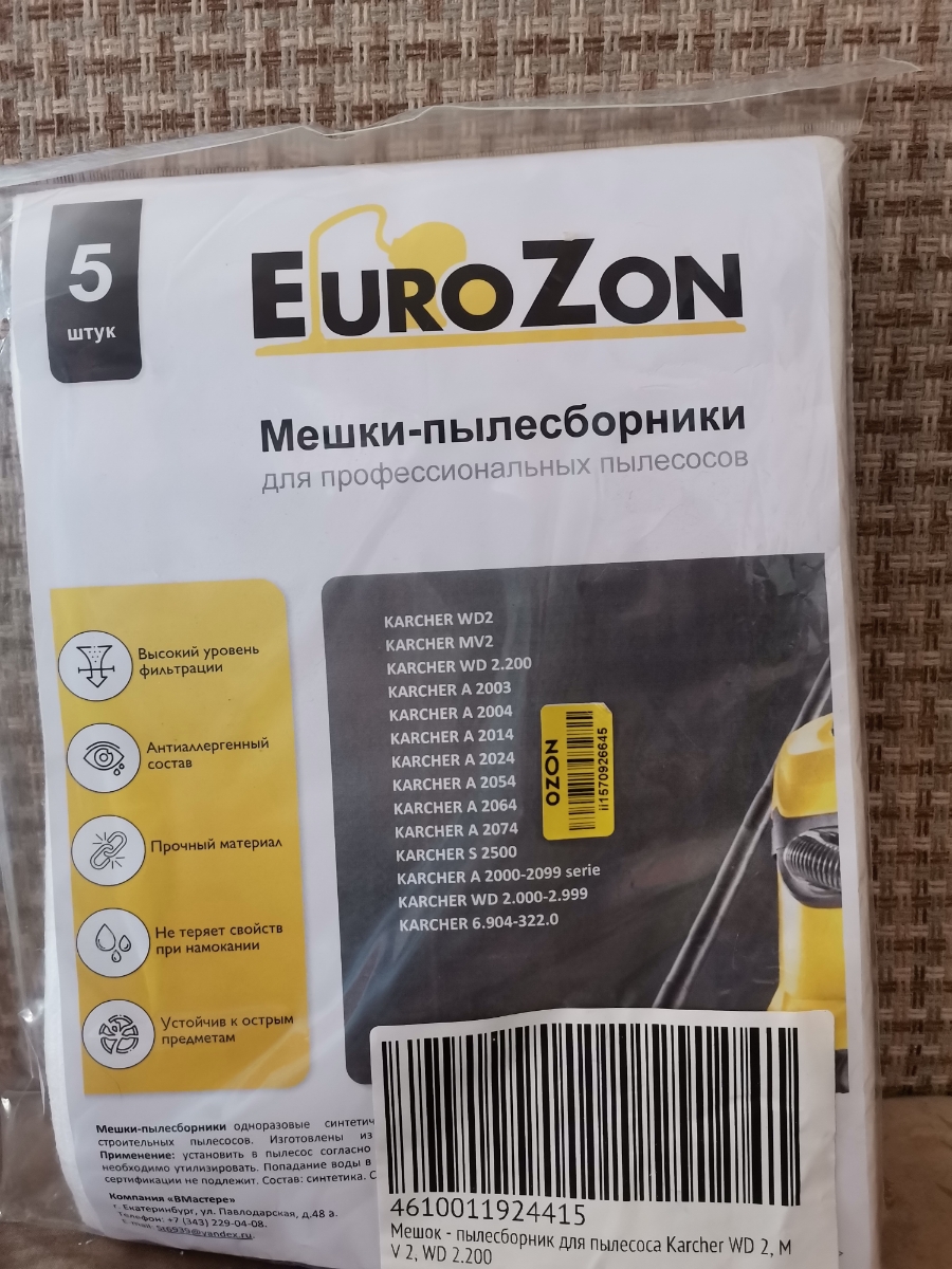 Мешок - пылесборник для пылесоса Karcher WD 2, MV 2, WD 2.200