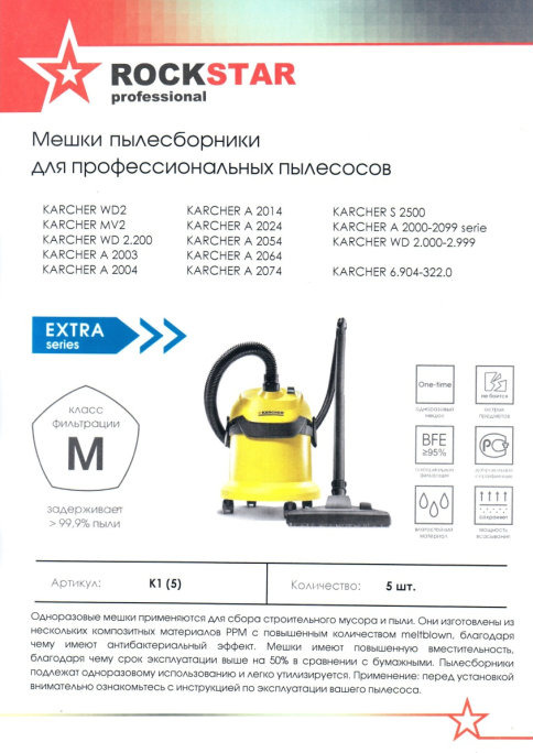 Мешок-пылесборник ROCKSTAR синтетический (5 шт) R5-SV