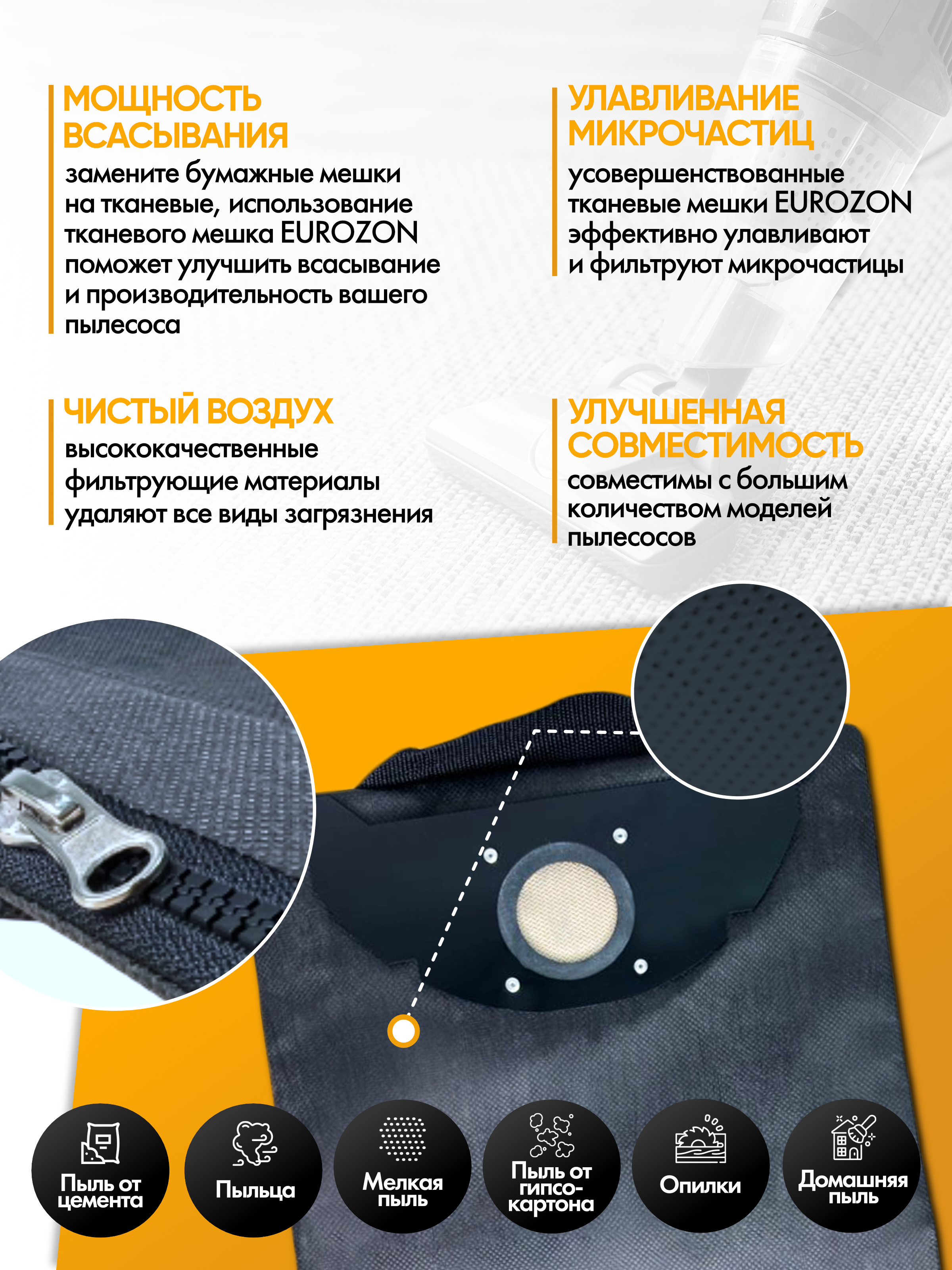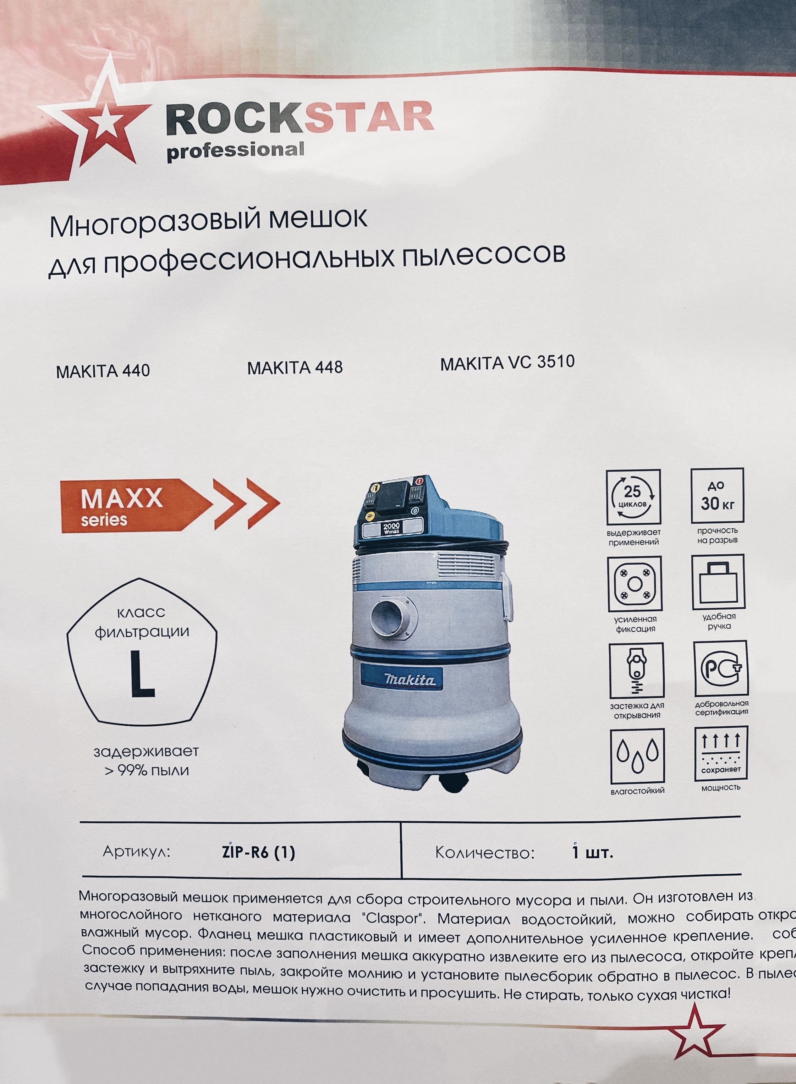 Мешок-пылесборник ROCKSTAR тканевый многоразовый ZIP-BS1
