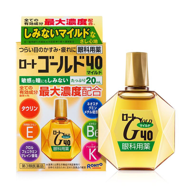 Rohto Gold 40 Mild Возрастные глазные капли от усталости с хондроитином, индекс свежести 0, 20 мл