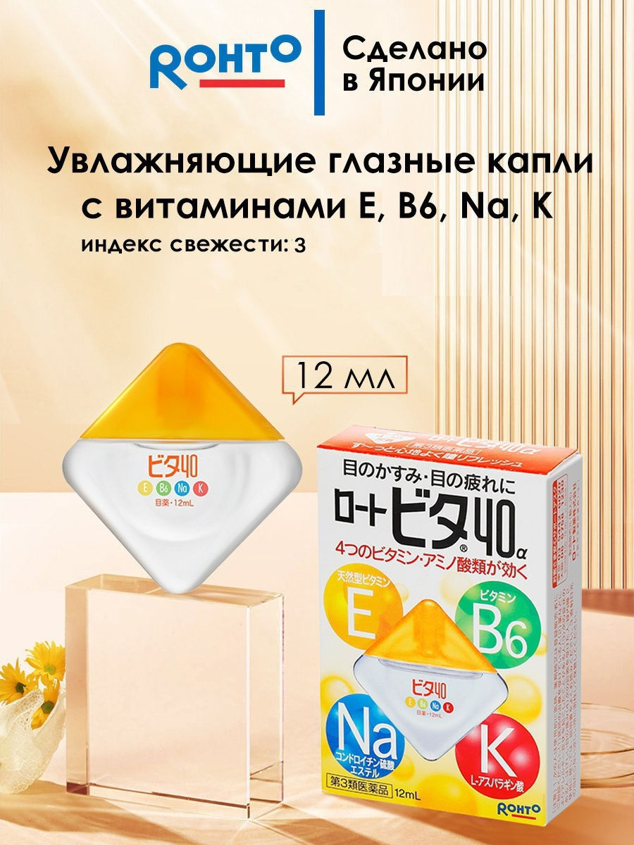 Капли для глаз Rohto Vita с витаминами E, B6, Na, K, индекс свежести 3, 12 мл.