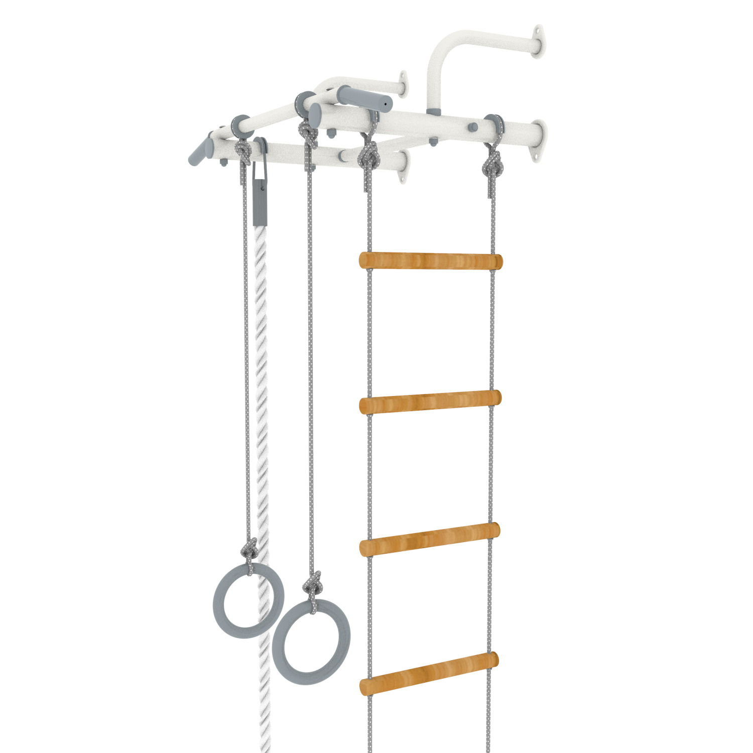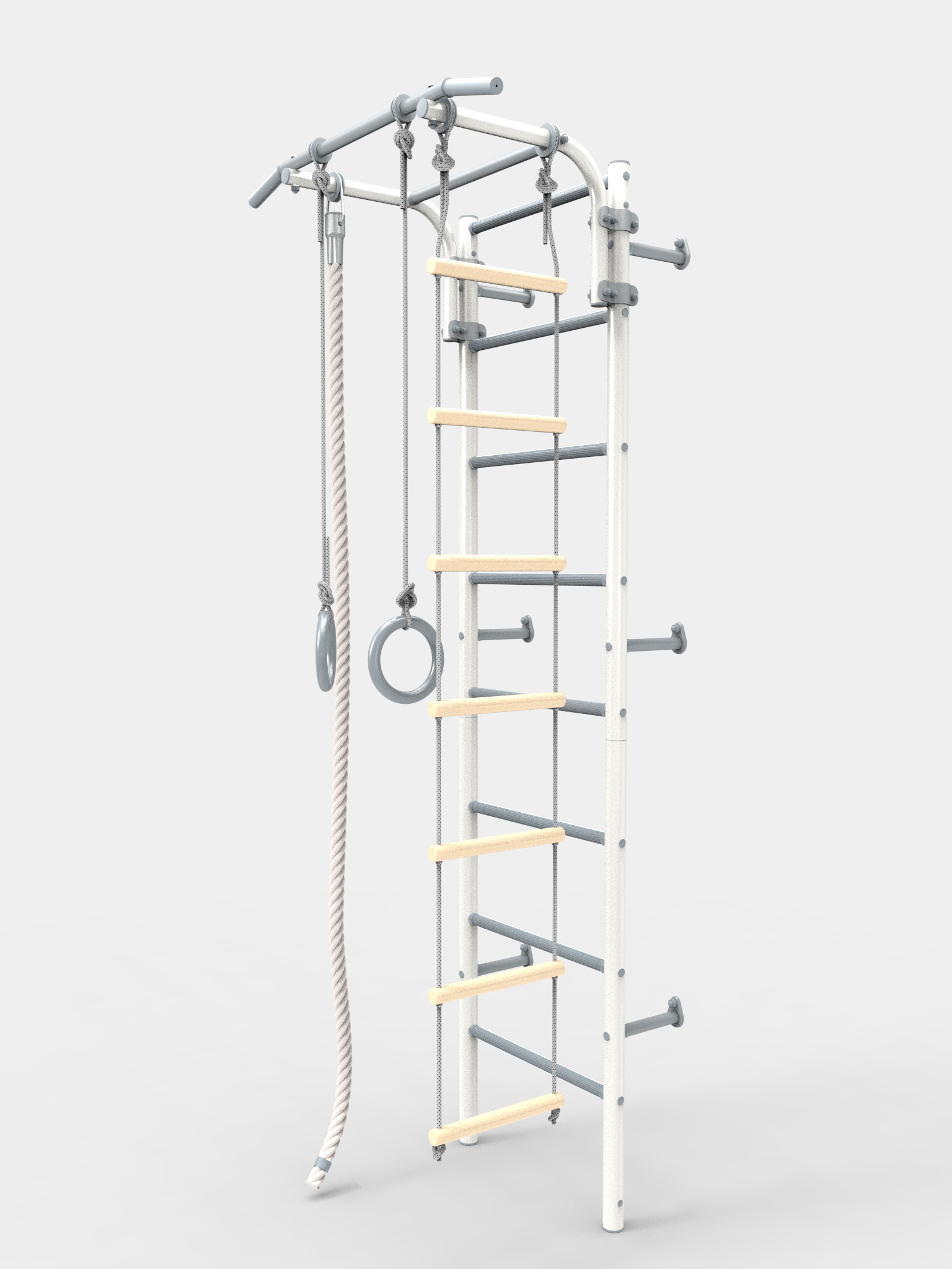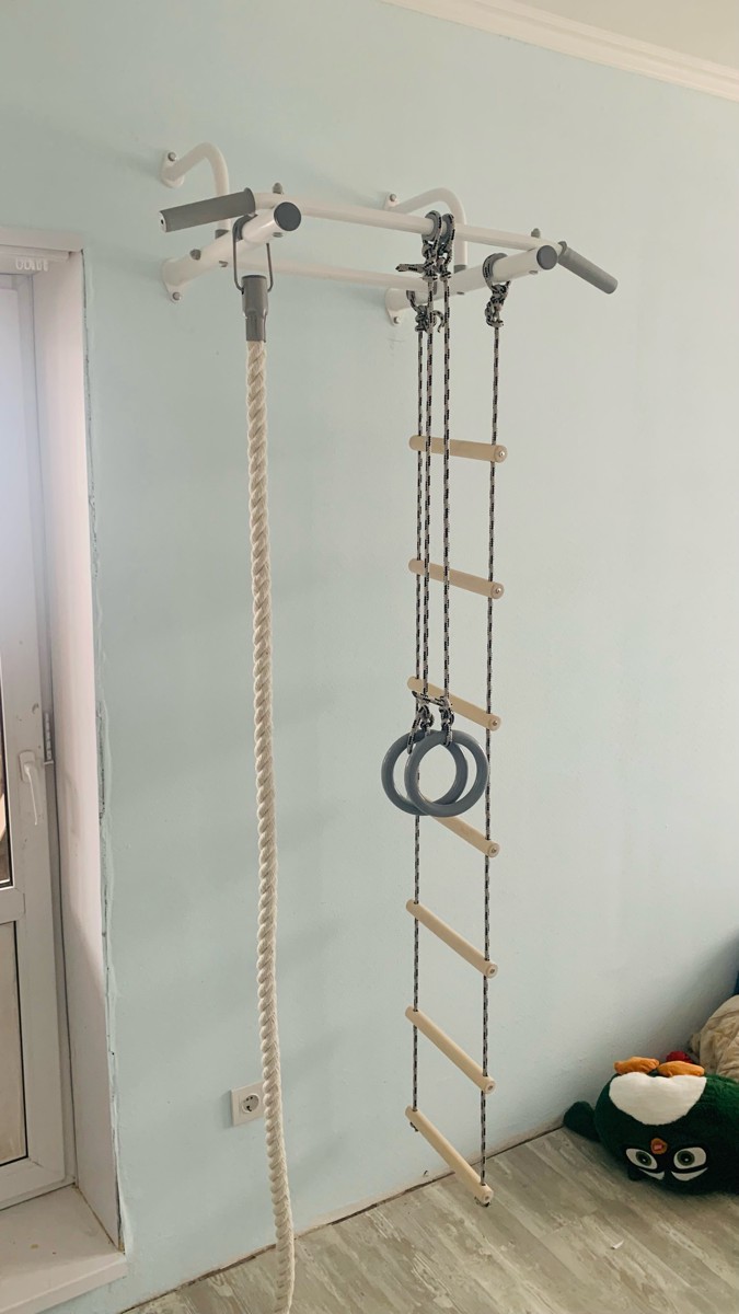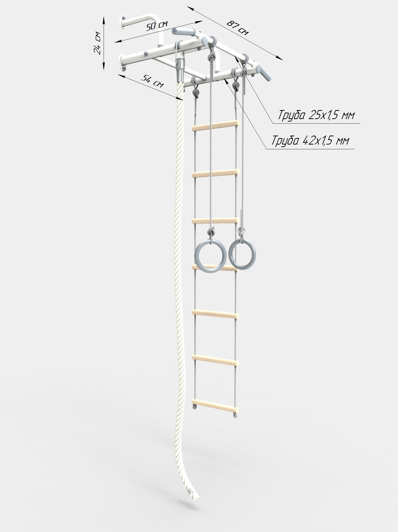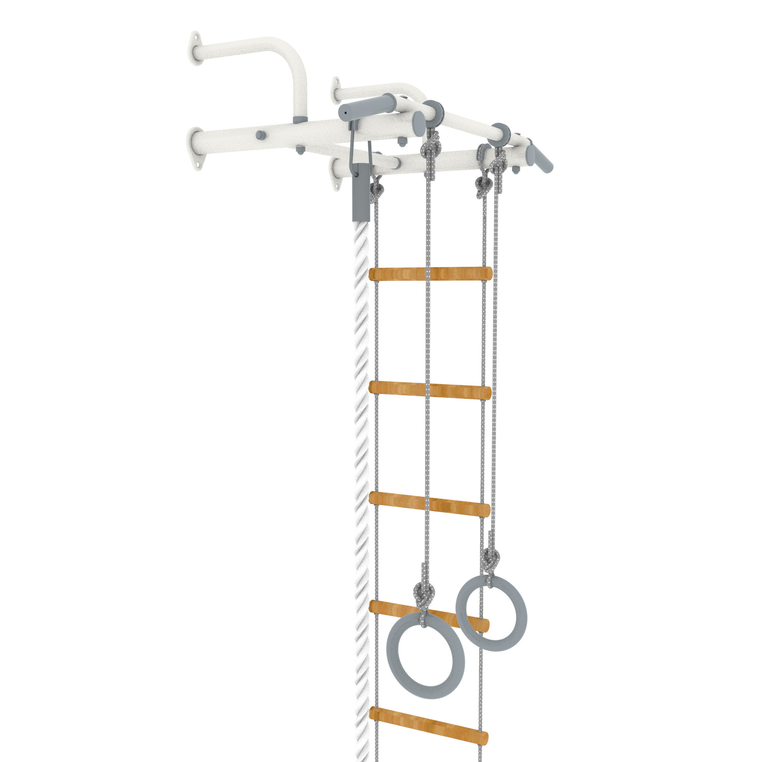 Турник настенный с навесным оборудованием белый Лестница веревочная, канат, кольца гимнастические