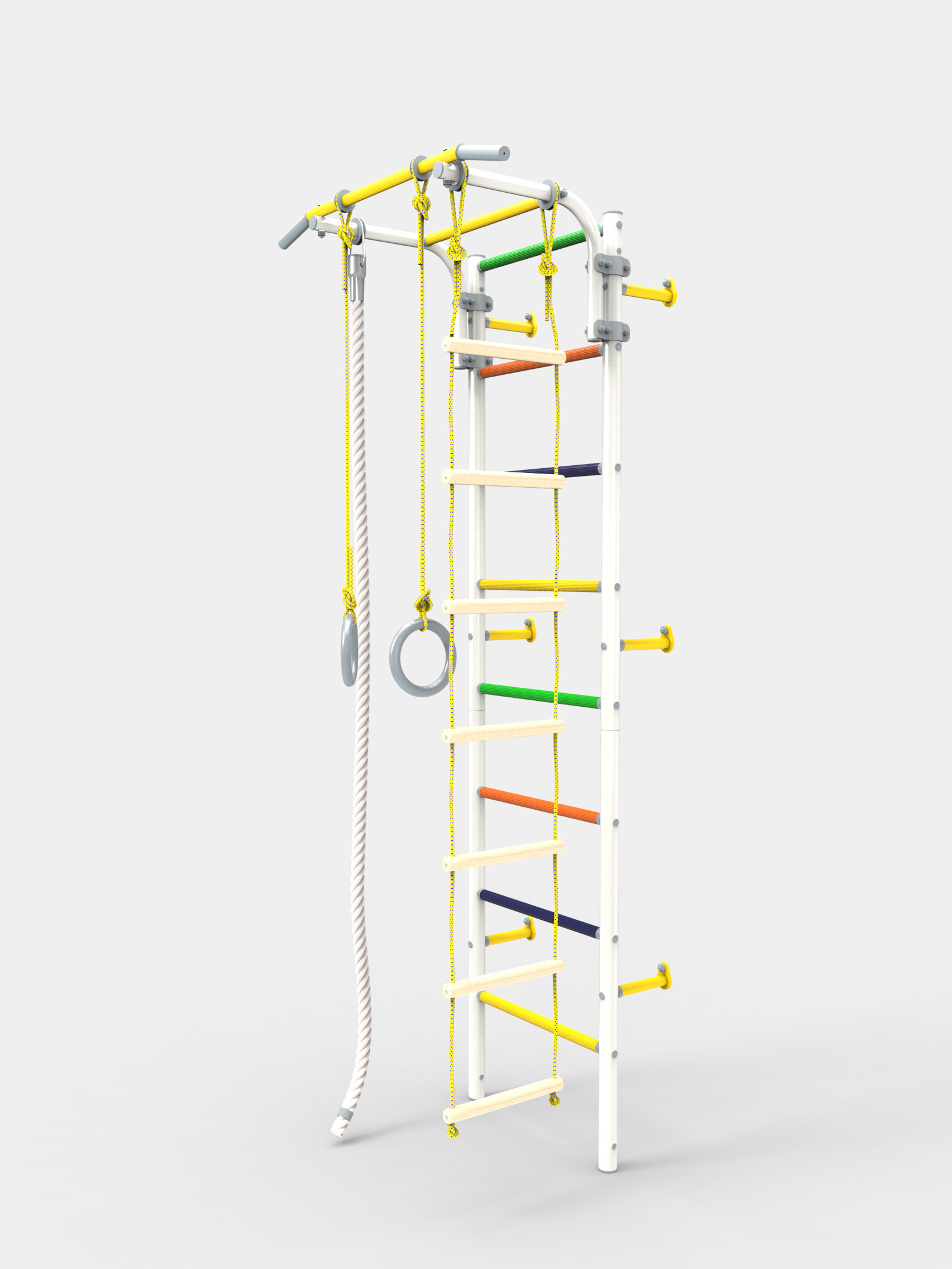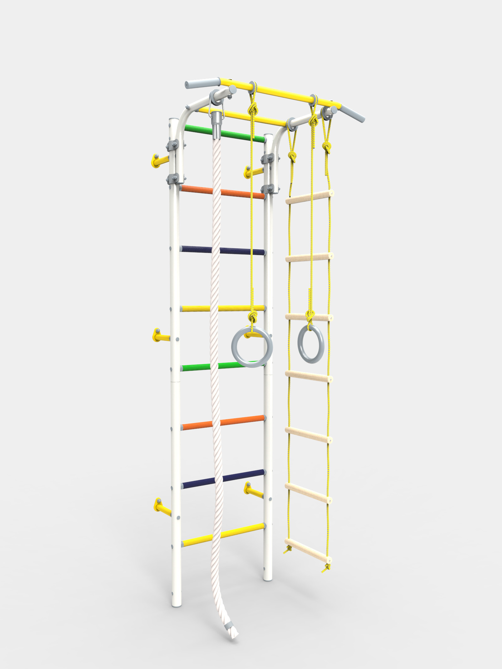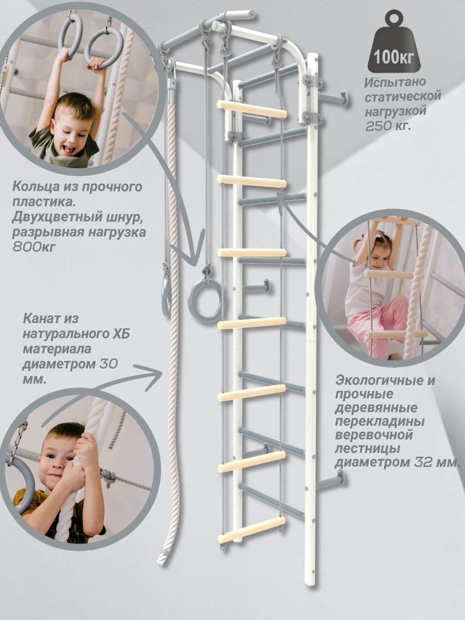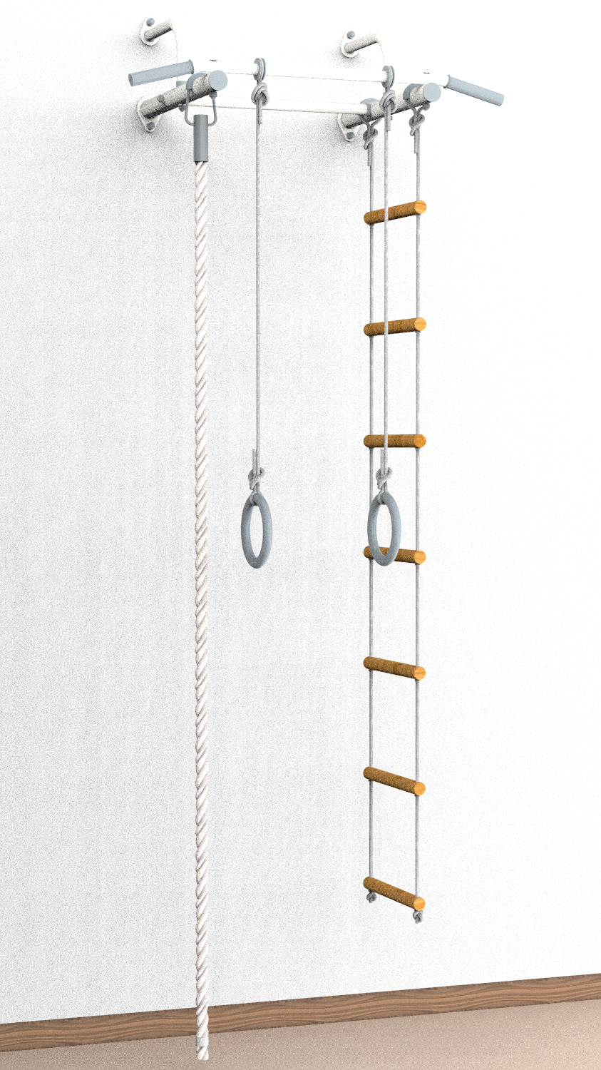 Турник настенный с навесным оборудованием белый Лестница веревочная, канат, кольца гимнастические