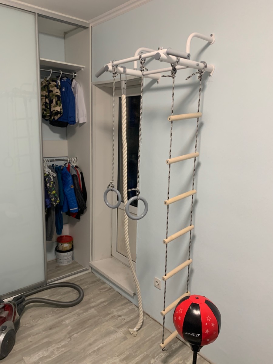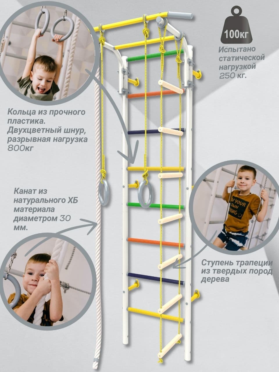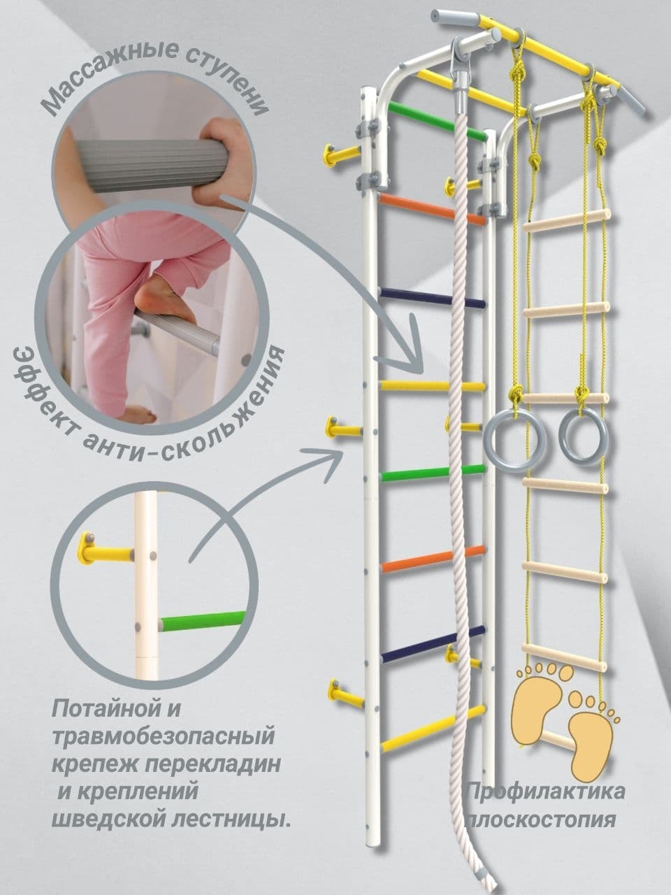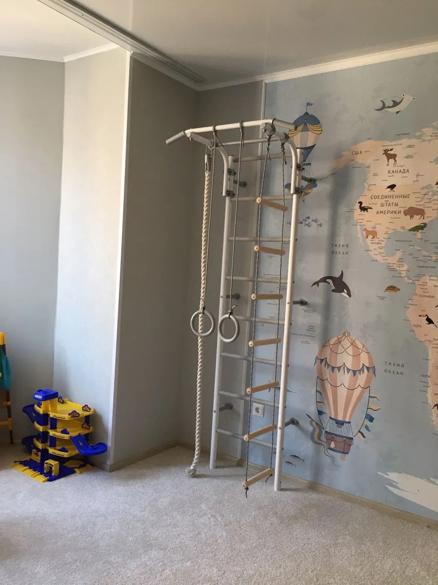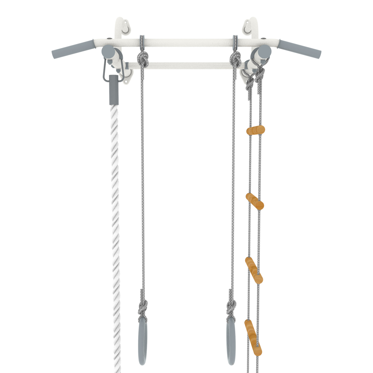 Турник настенный с навесным оборудованием белый Лестница веревочная, канат, кольца гимнастические