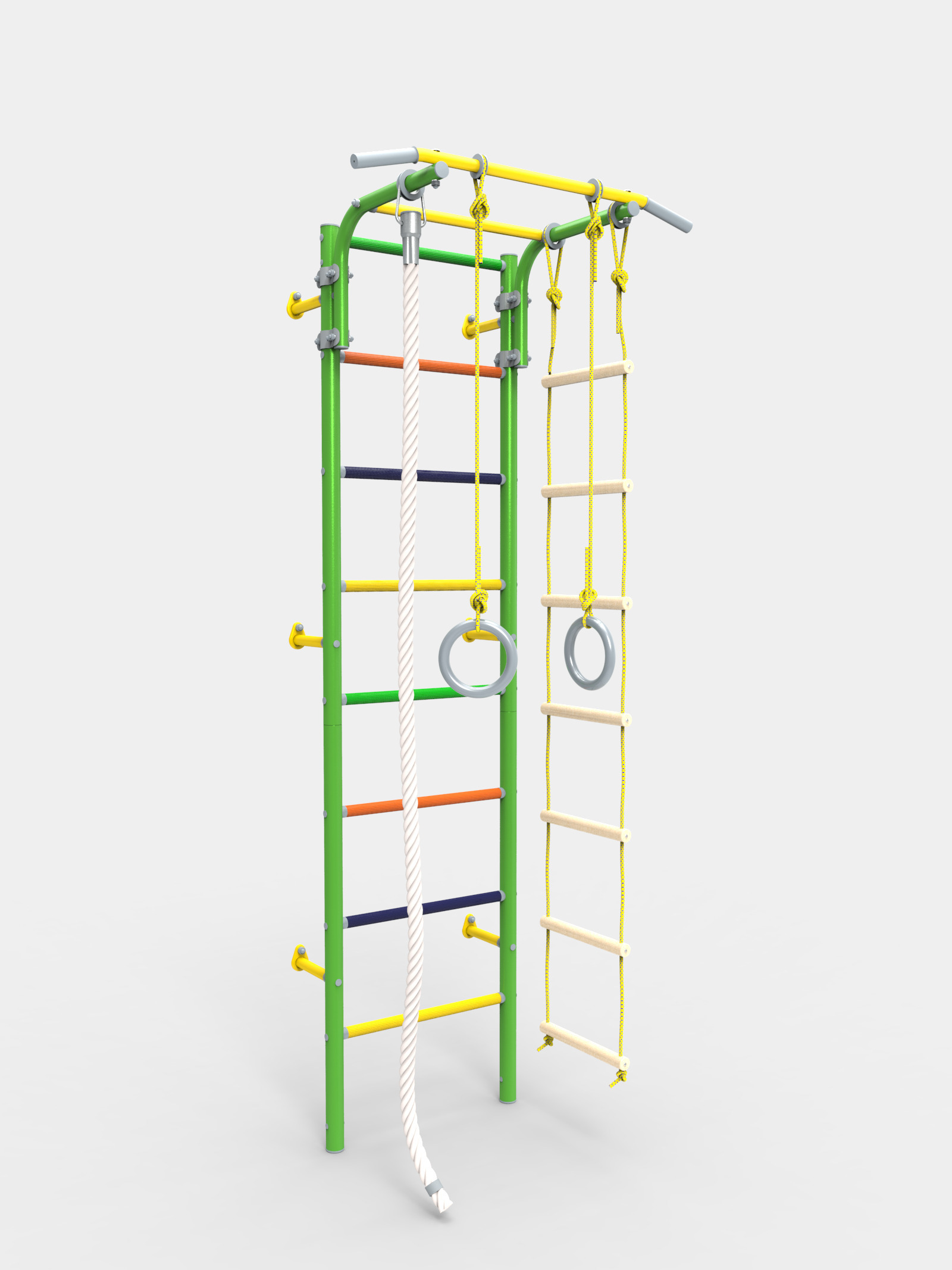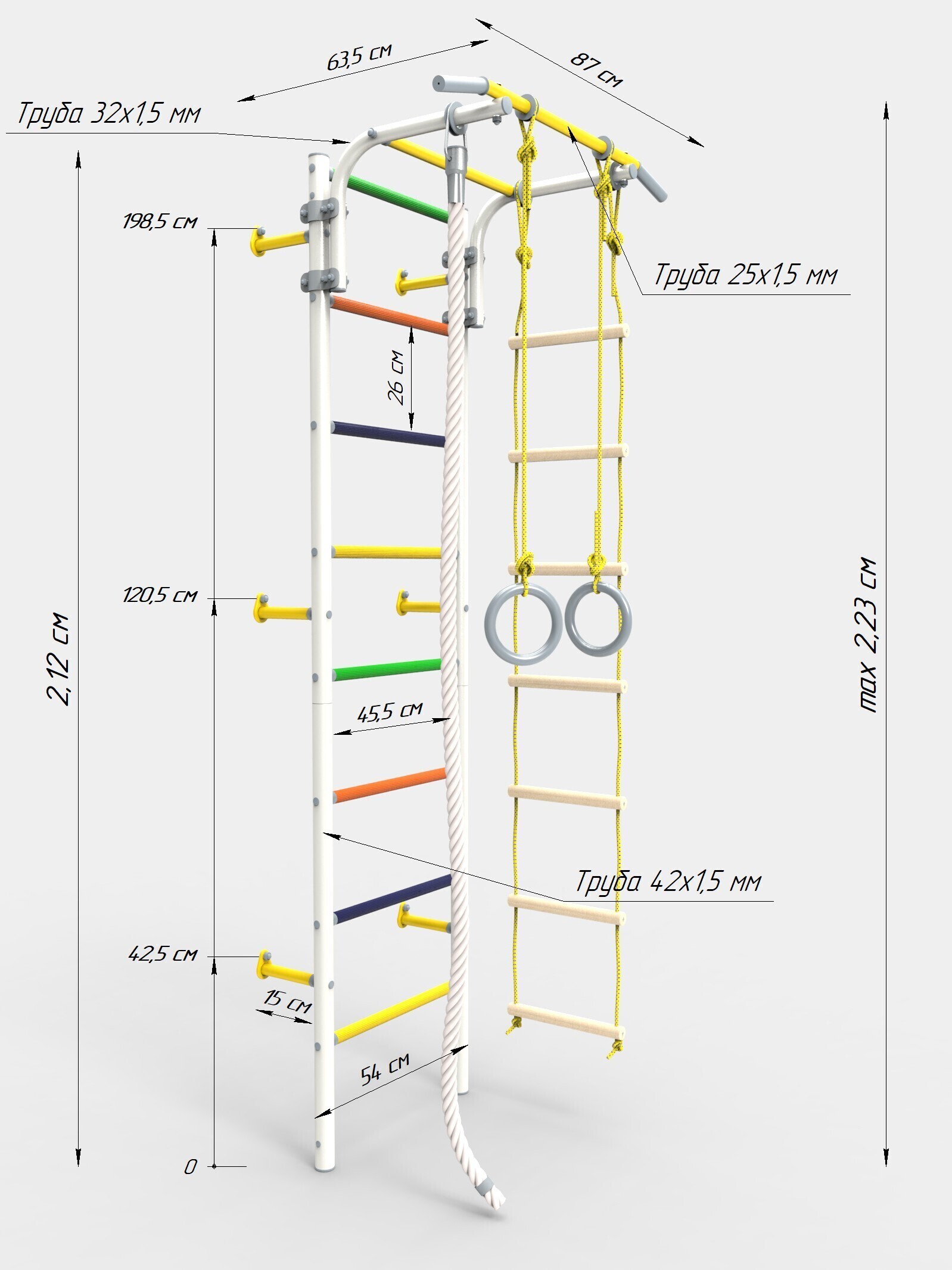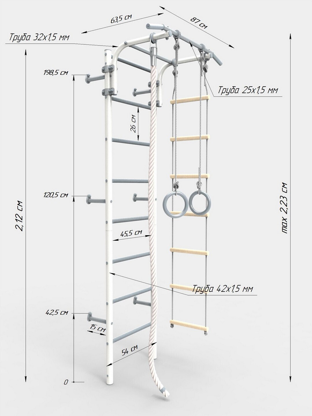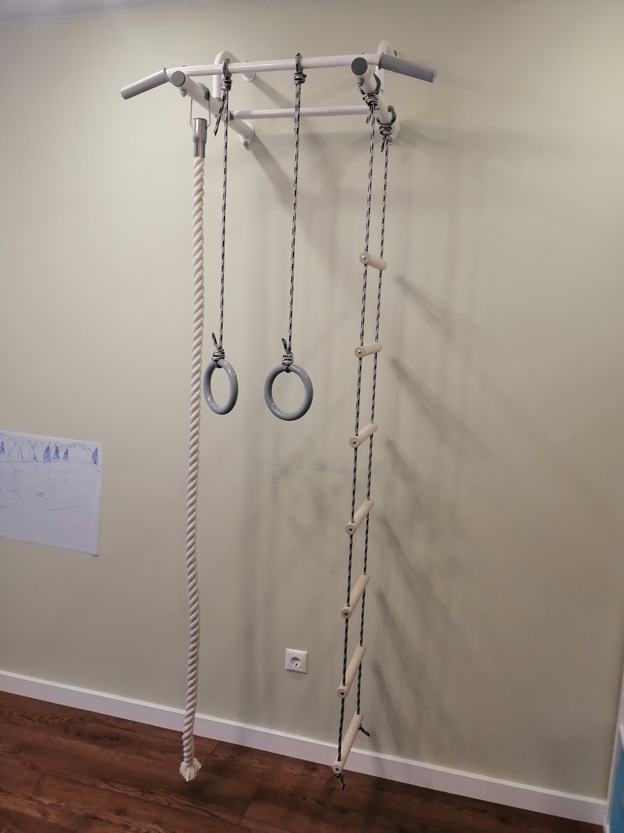 Турник настенный с навесным оборудованием белый Лестница веревочная, канат, кольца гимнастические