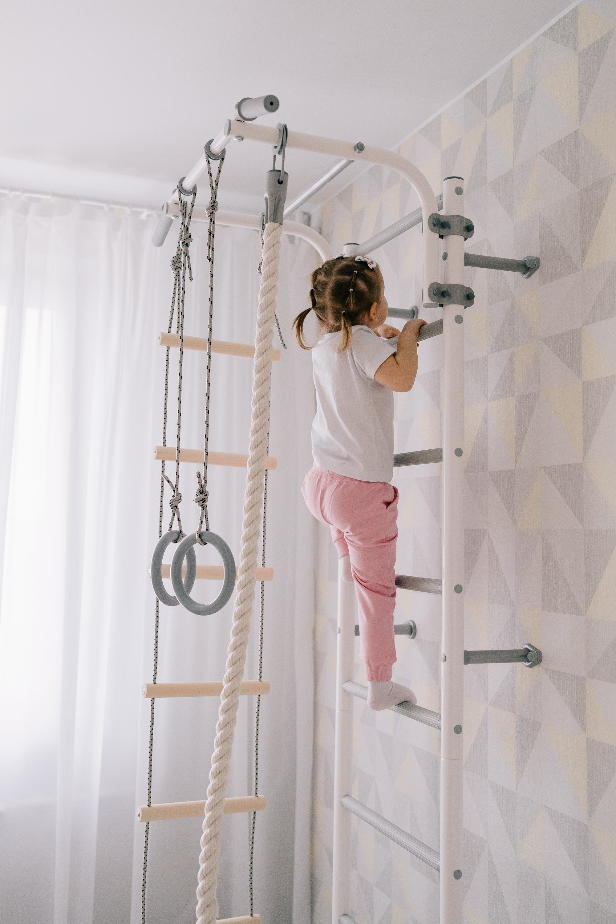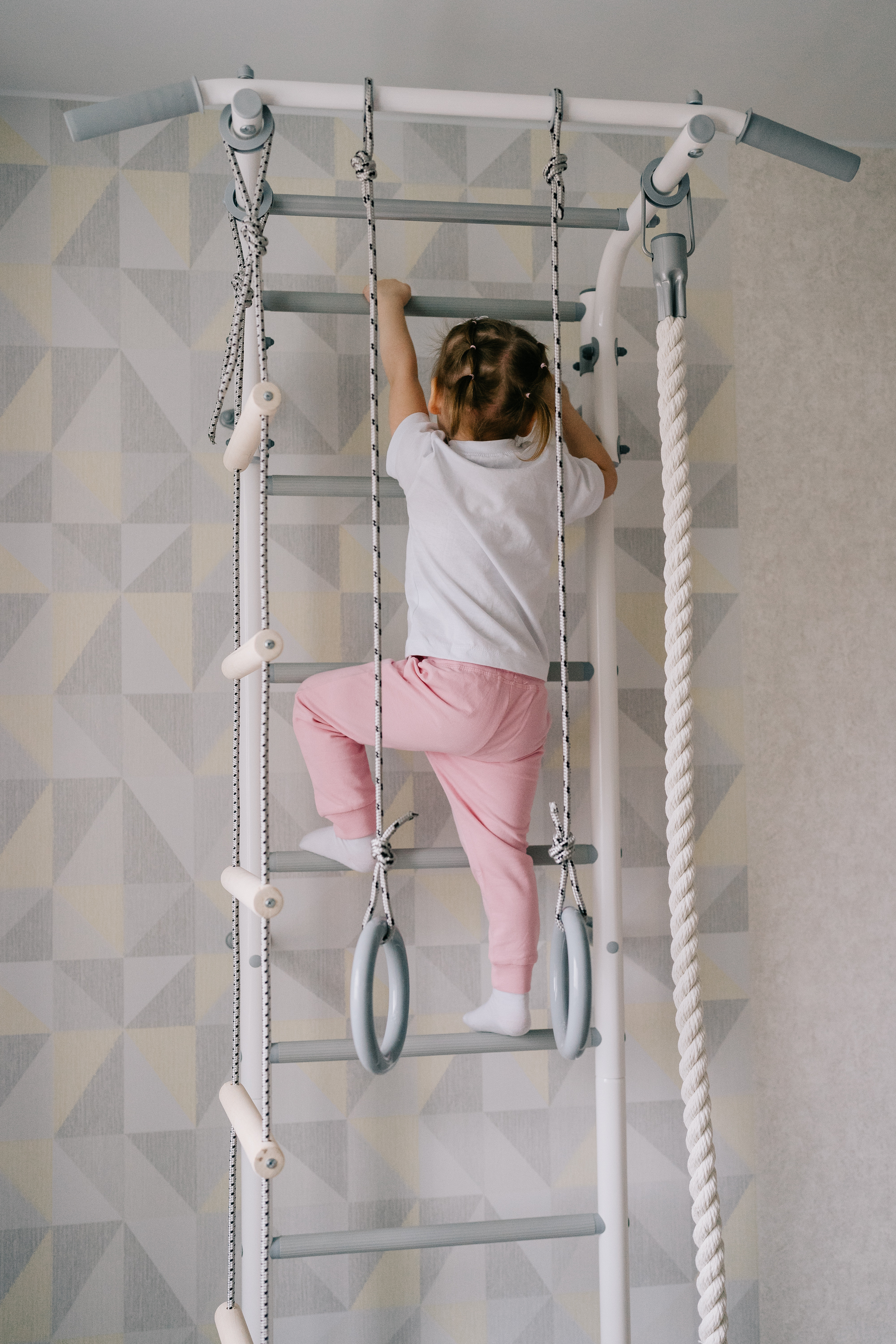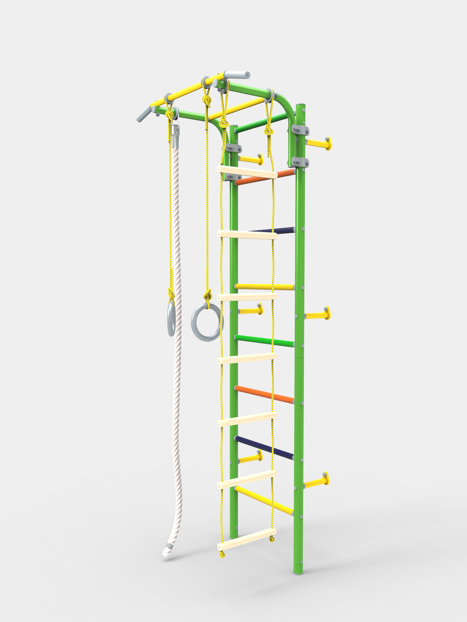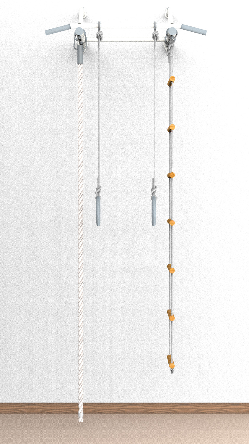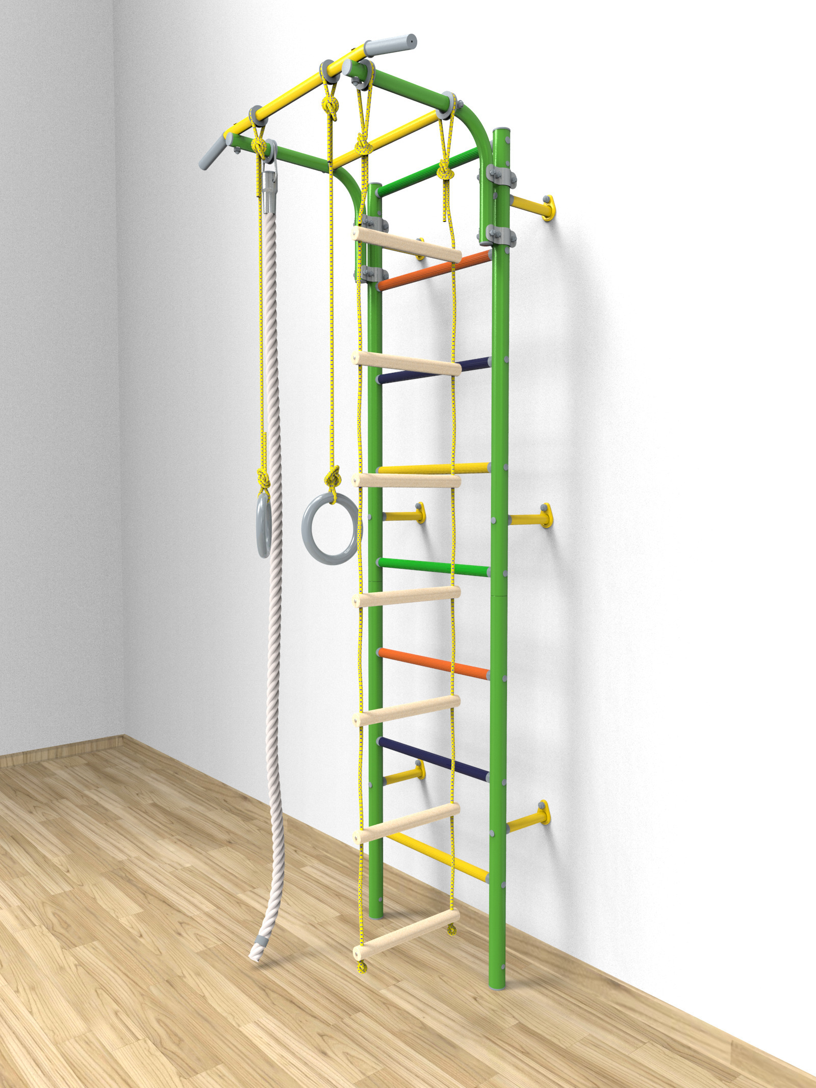 Турник настенный с навесным оборудованием белый Лестница веревочная, канат, кольца гимнастические